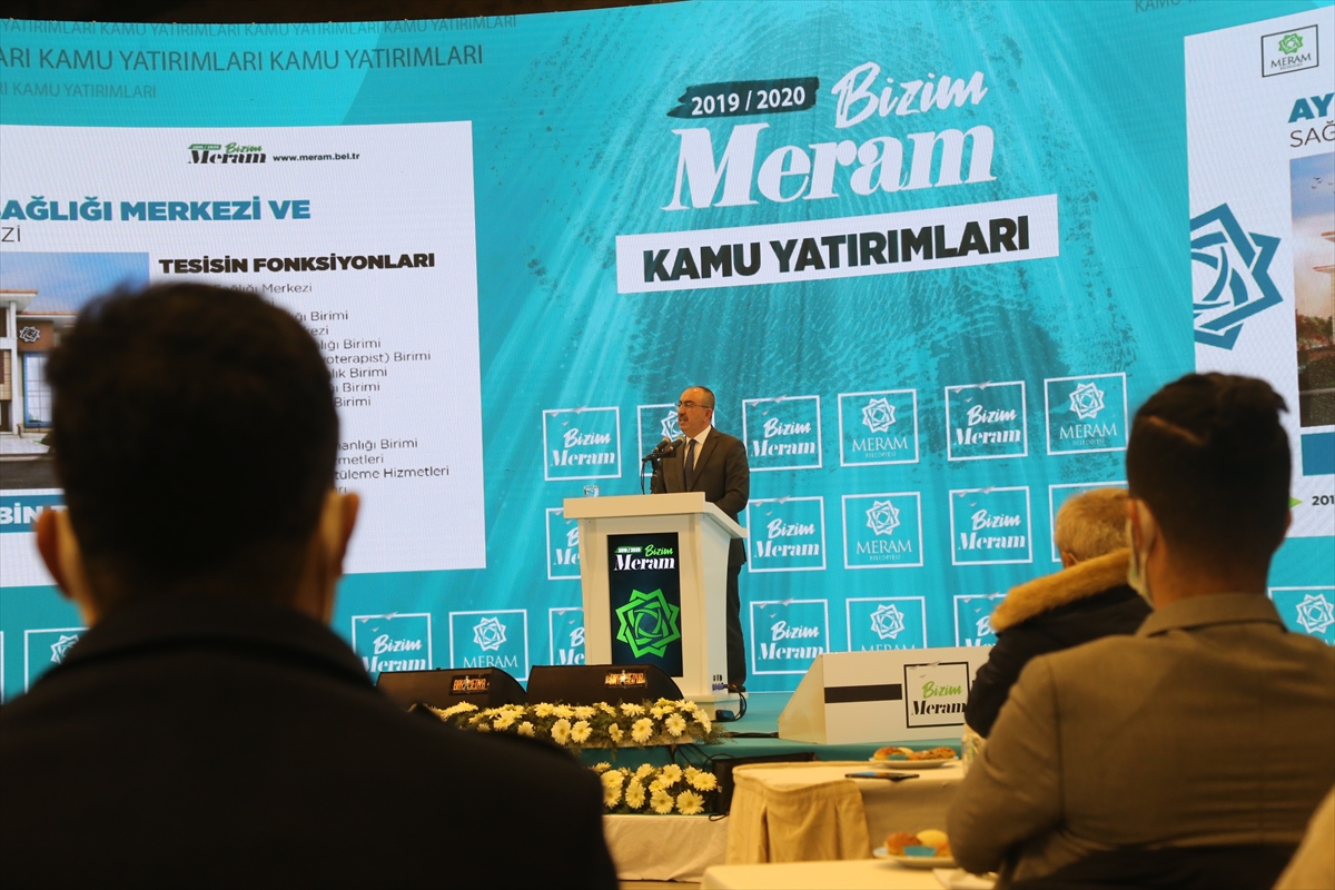 "Gurur ve mutlulukla söylüyorum; 2020 yılı Meram'ın kamu yatırımlarında en parlak dönemi oldu. Altın çağını yaşıyor, desem doğru olur. Toplam tutarı 445 milyon lira olan kamu yatırım ilçeye kazandırılıyor. Geçen yıl temeli atılan ve inşaatı devam eden hizmetlerin çoğu yıl sonunda bitecek. Bunlardan inşası süren 44,5 milyon liralık yatırımla 108 bin metrekarelik millet bahçesi, on binlerce vatandaşımıza hizmet edecek. Konya'nın ikinci millet bahçesi olacak. Şükran Kentsel Dönüşüm ve Gelişim Projesi'nin ihalesi yapıldı, müteahhit firma işe başlamak üzere. 1. Etap TOKİ Proje alanında da, 116 dükkan, 182 ofisi, altyapı ve çevre düzenlemesi yapılacak. Bu proje 61 milyon liraya mal olacak. Bunların yanı sıra; TRT Uluslararası Film Platosu, Sporcu Yetiştirme Merkezi, Veledrom, Meram Hükümet Konağı, Alaaddin Bulvarı Cephe Rehabilitasyonu, kanalizasyon, şebeke suyu ve sulama projeleri bu yatırımlardan bazıları."
