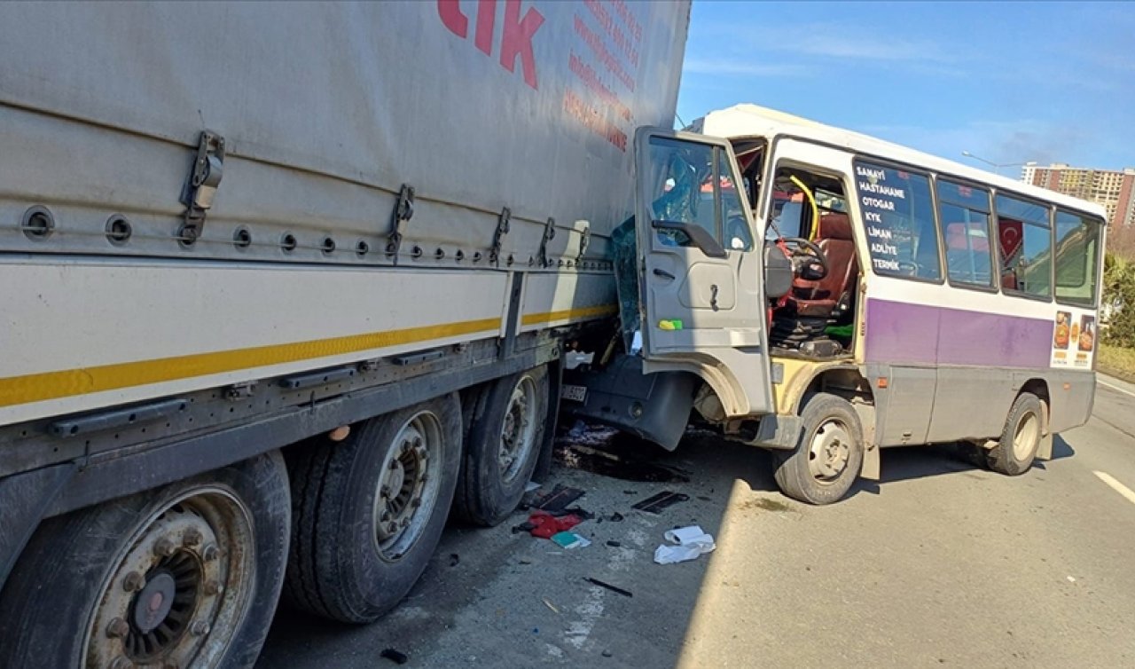 Minibüsün tıra çarptığı kazada 12 kişi yaralandı