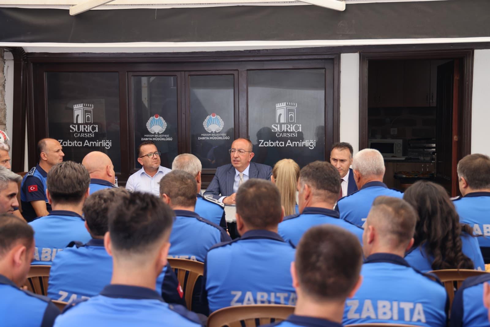 Meram Belediye Başkanı Mustafa Kavuş, Zabıta Haftası dolayısıyla Suriçi Çarşısı Zabıta Amirliği'ni ziyaret etti. Ziyaretinde zabıta personeliyle bir süre sohbet eden Başkan Kavuş, teşkilatın toplum düzeni ve şehir hayatındaki önemine dikkat çekti. Zabıta Teşkilatı'nın iki yüzyıla yaklaşan yaşıyla Türkiye'nin en köklü kurumlarından biri olduğunun altını çizen Başkan Kavuş, Meram Belediyesinde görev yapan zabıtaların haftasını kutlayarak, tüm zabıta personeline sağlıklı ve başarılı bir çalışma hayatı diledi.