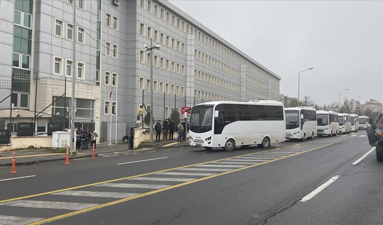 8. Ağır Ceza Mahkemesi'nde önceki gün başlayan davanın ikinci duruşmasının üçüncü gününde tutuklu sanıklar, Diyarbakır Ceza İnfaz Kurumları Kampüsü'nden cezaevi nakil araçlarıyla geniş güvenlik önlemi alınarak Diyarbakır Adliyesi'ne getirildi.