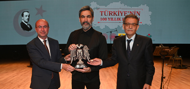 Konser, Başkan Pekyatırmacı ve Anadolu Mektebi Başkanı Güçlü'nün sanatçı Işılak'a Selçuklu Medeniyeti'nin sembolü olan çift başlı kartal takdimi ile son buldu.