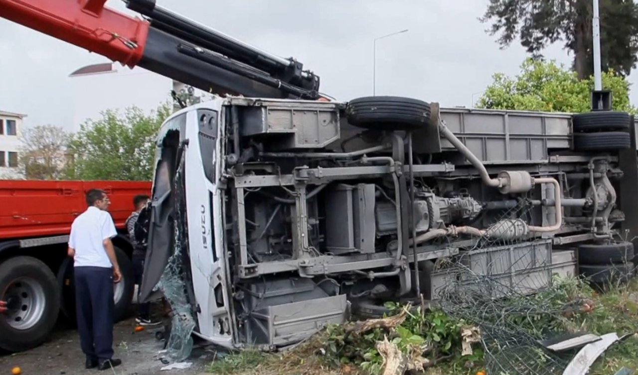 Kazada devrilen midibüsteki 19 otel personeli yaralanırken, araç sürücüsü yara almadan kurtuldu.