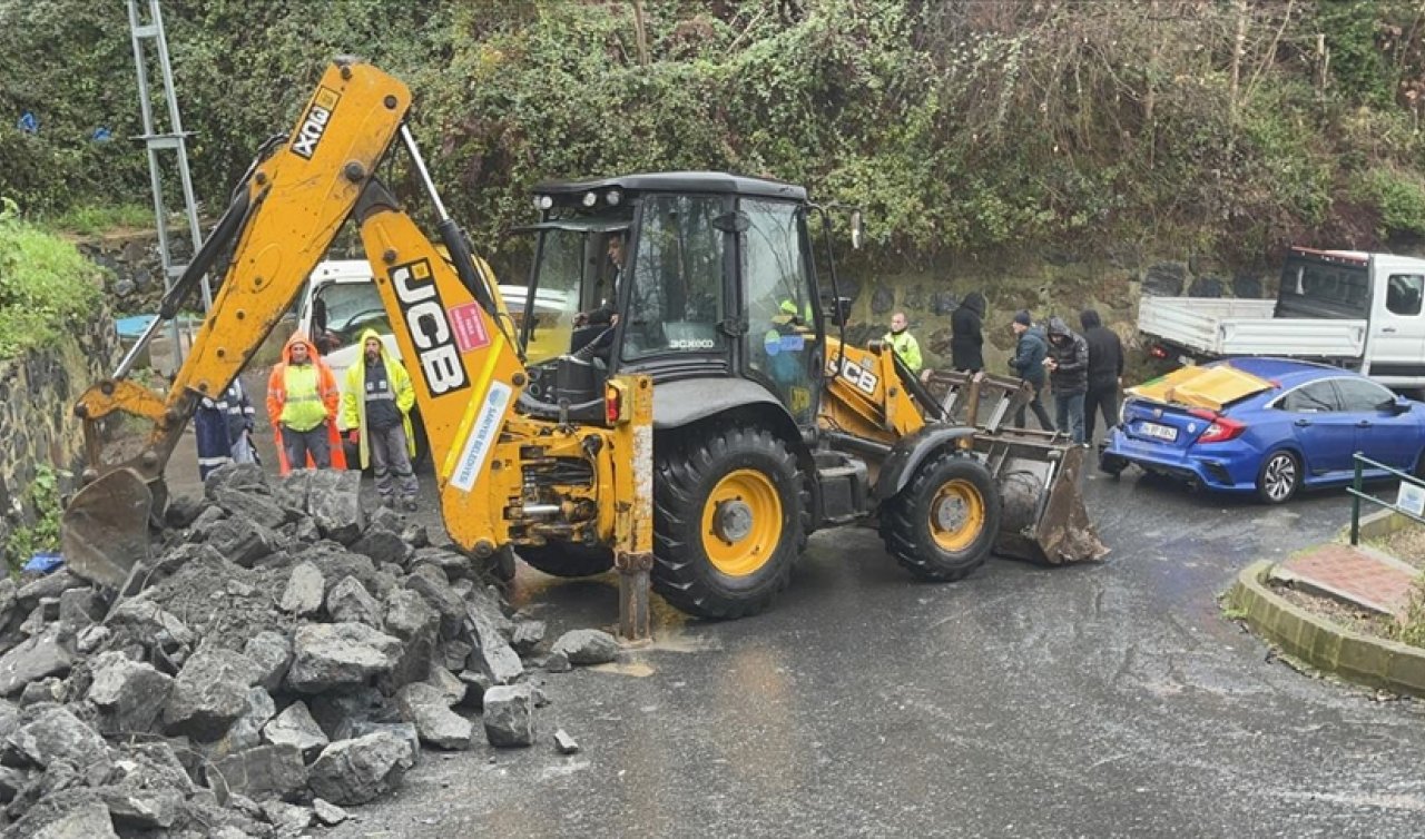 Sarıyer'de yağış nedeniyle istinat duvarının üzerine yıkıldığı park halindeki otomobilde hasar oluştu.
