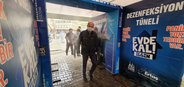 Ilgın Belediyesi, kapalı sebze pazarına dezenfeksiyon tüneli kurdu.