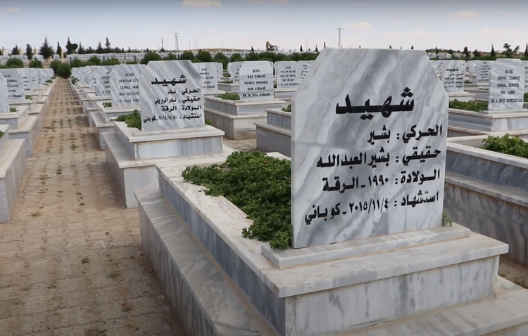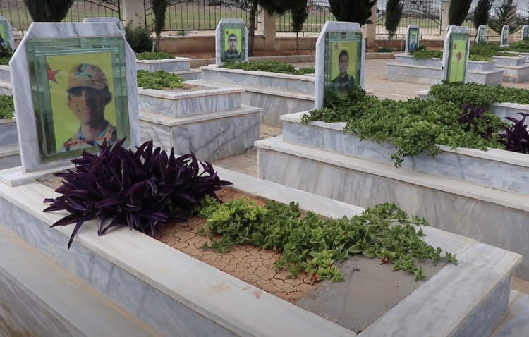 Örgütün sözde şehitliğinde, Arapça ve Kürtçe mezar taşlarındaki bilgilerden çocuk yaşta olanların kayıtları dikkati çekiyor.