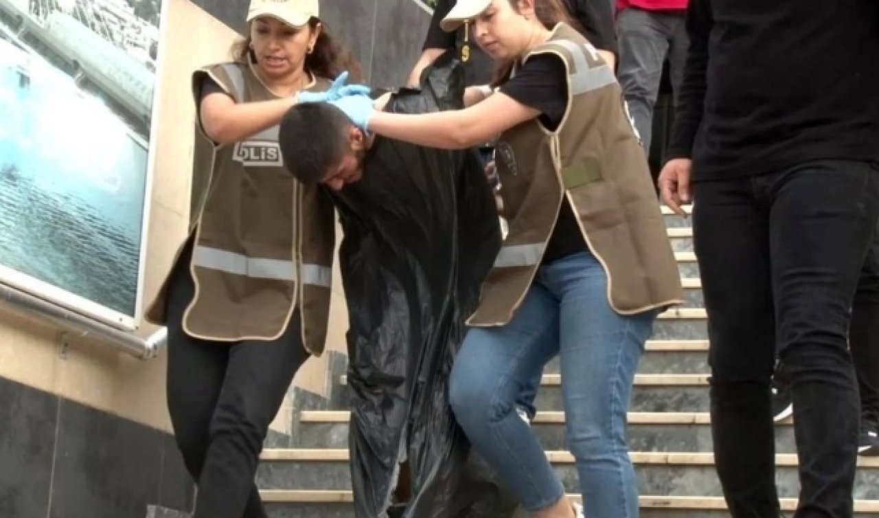 Zanlı, boydan çöp poşeti geçirilerek 2 kadın polisin eşliğinde Çevre, Doğa ve Hayvanları Koruma Büro Amirliği aracıyla İstanbul Anadolu Adliyesine sevk edildi.
