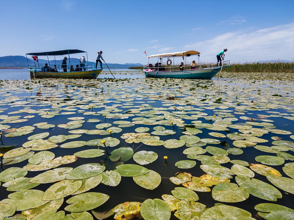 Gölde açan nilüfer çiçekleri, görenleri kendine hayran bırakıyor. Özellikle sabah saatlerinde güneşin doğuşuyla birlikte su yüzeyine açılan nilüferler, öğle saatlerinde hava sıcaklığının artmasıyla birlikte suyun altına çekilerek kapanıyor.