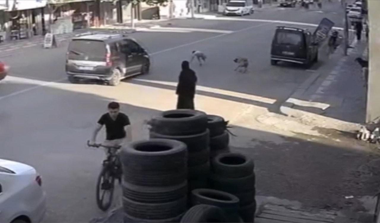 Şanlıurfa'nın Ceylanpınar ilçesinde sahipsiz köpeğin saldırısından kurtulmak isteyen çocuğun trafikte yaşadığı tehlikeli anlar, güvenlik kamerasınca görüntülendi.
