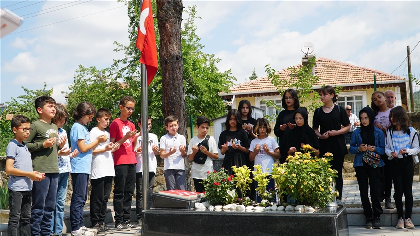 Anne Zehra ve baba Sadık Yalçın ile beraberindekiler, Aybüke öğretmenin çiçeklerle süslenmiş mezarını suladı, Kur'an-ı Kerim okunmasının ardından dua edildi.