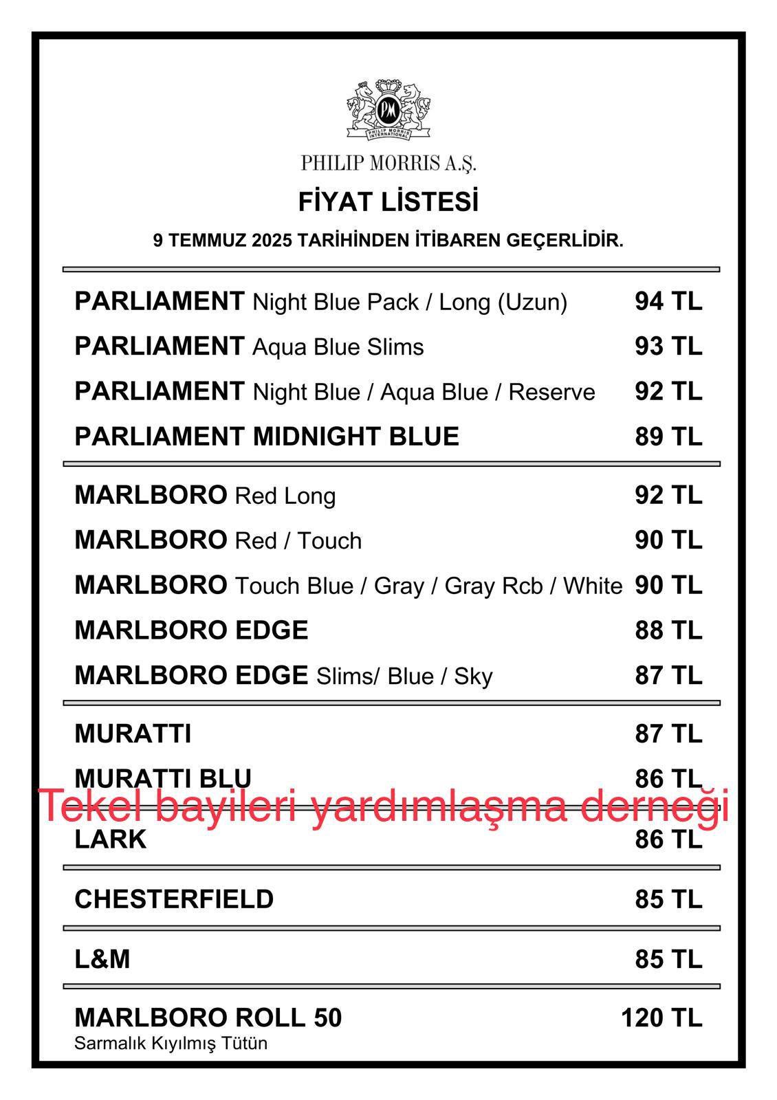 Philip Morris A.Ş.’ye ait sigara markalarına 9 Temmuz 2025 itibarıyla zam geldi.
