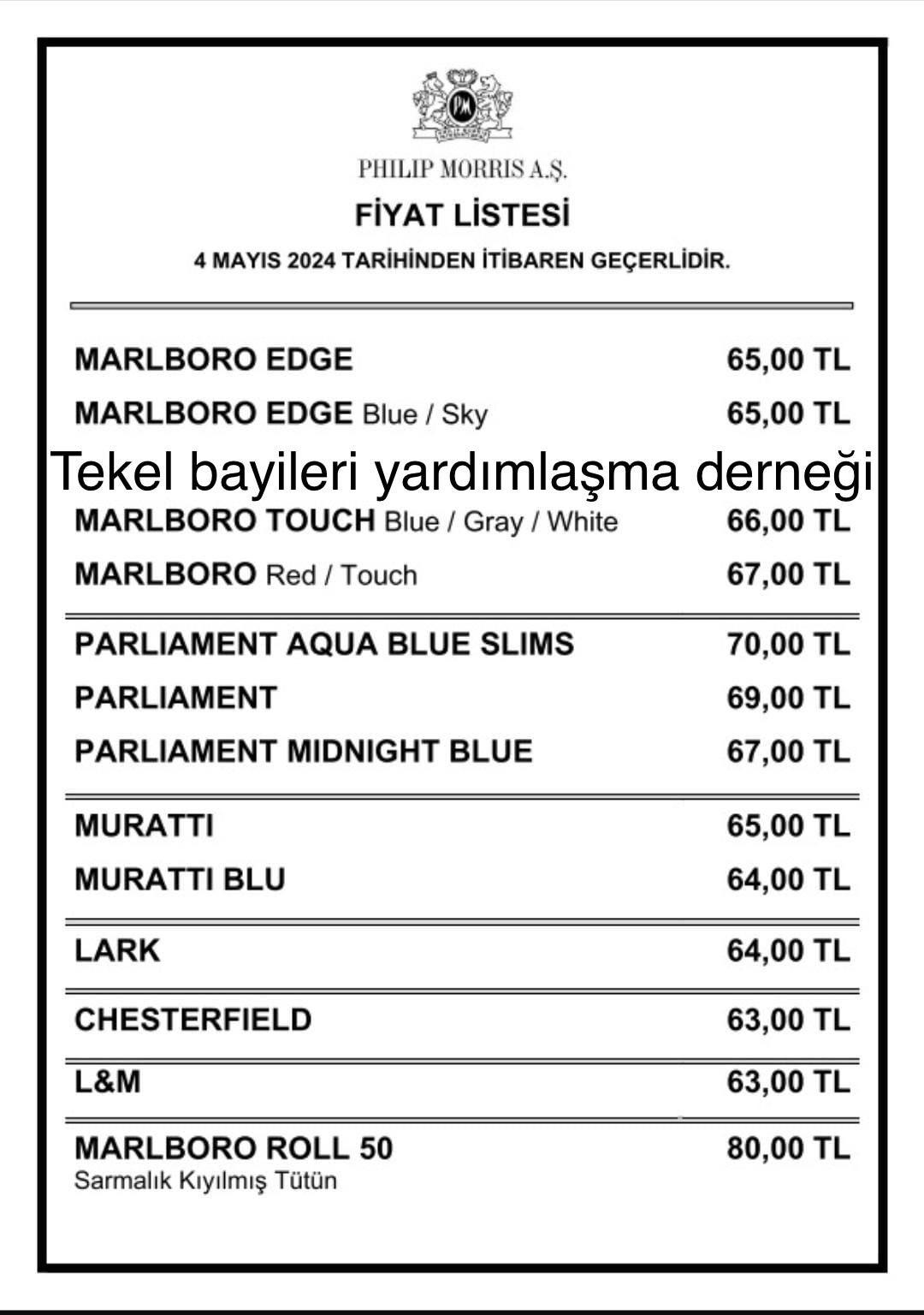 Bir sigara grubuna 3 TL zam geldi.Tekel Bayileri Yardımlaşma Derneği (TBYD) Başkanı Erol Dündar, sosyal medya hesabından PM sigara grubunda zam yapıldığını açıkladı. Zamlı sigara fiyatları bugünden (4 Mayıs) itibaren uygulanmaya başlanacak. Dündar paylaşımına, "Sigaraya bir zam daha... Sigaraya zam yağmuru devam ediyor. PM grubuna zam geldi" notunu düştü.