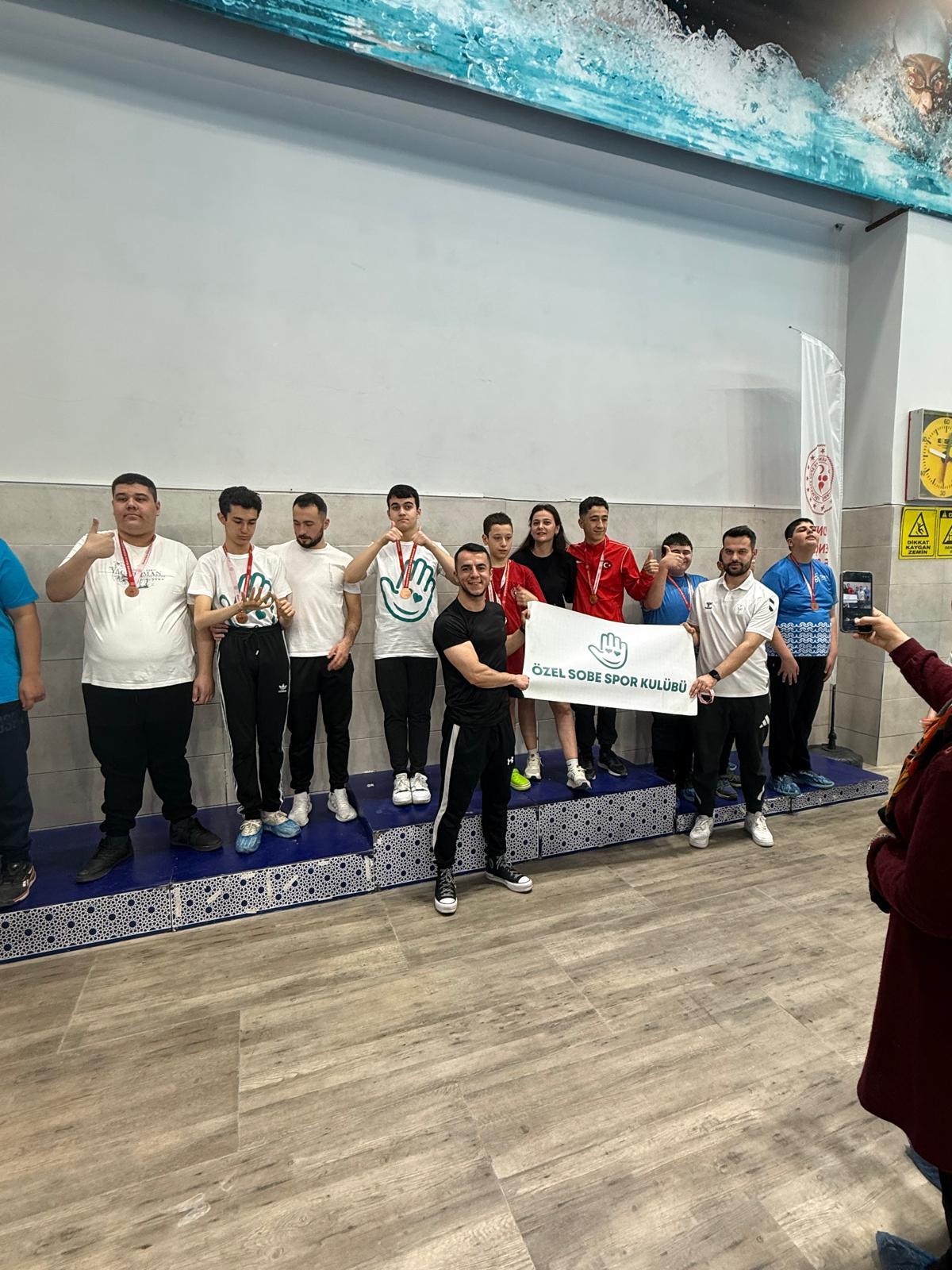 SOBE Vakfı bünyesinde faaliyet gösteren Özel SOBE Spor Kulübü, spor tarihinde bir ilke daha imza attı. 14-15 Mart 2026 tarihlerinde Konya Olimpik Yüzme Havuzu'nda düzenlenen Özel Sporcular Yüzme İl Birinciliği'ne 18 sporcu ile katılan kulüp, toplamda 28 madalya kazanarak dikkatleri üzerine çekti. Kulüp tarihinin en geniş katılımlı organizasyonuna damga vuran sporcular, büyük heyecana sahne olan yarışmalar sonucunda 17 altın, 6 gümüş ve 5 bronz madalya ile kulüp tarihinin en yüksek madalya sayısına ulaştı. Bu başarıyla birlikte sporculardan Alper Akgül, 9 stilde altın madalya kazanarak önemli bir performans sergiledi. Aynı zamanda 50 metre serbest, 50 metre kelebek, 50 metre sırt, 100 metre sırt ve 200 metre sırt yarışlarında milli takım aday kadro katılım barajını geçerek Türkiye Şampiyonası'na katılım hakkı elde etti.
