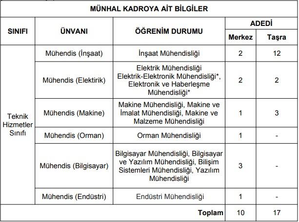Yapılan açıklamada: ''Diyanet İşleri Başkanlığımız Merkez ve Taşra Teşkilatında münhal bulunan ve aşağıdaki tabloda bilgileri yer alan mühendis kadrolarına ünvan değişikliği sınavı sonucuna göre kurum içi naklen alım yapılacaktır.''