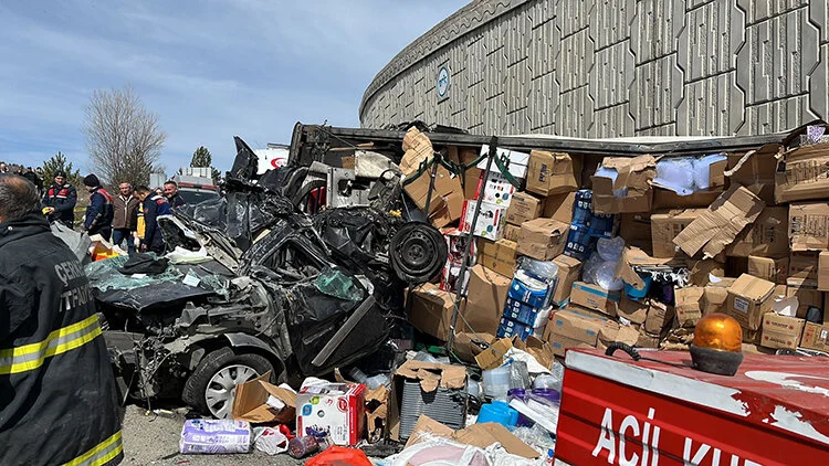 Bu sırada aynı yönde seyreden yabancı uyruklu S.N. idaresindeki tır, otomobilin üzerine devrildi.