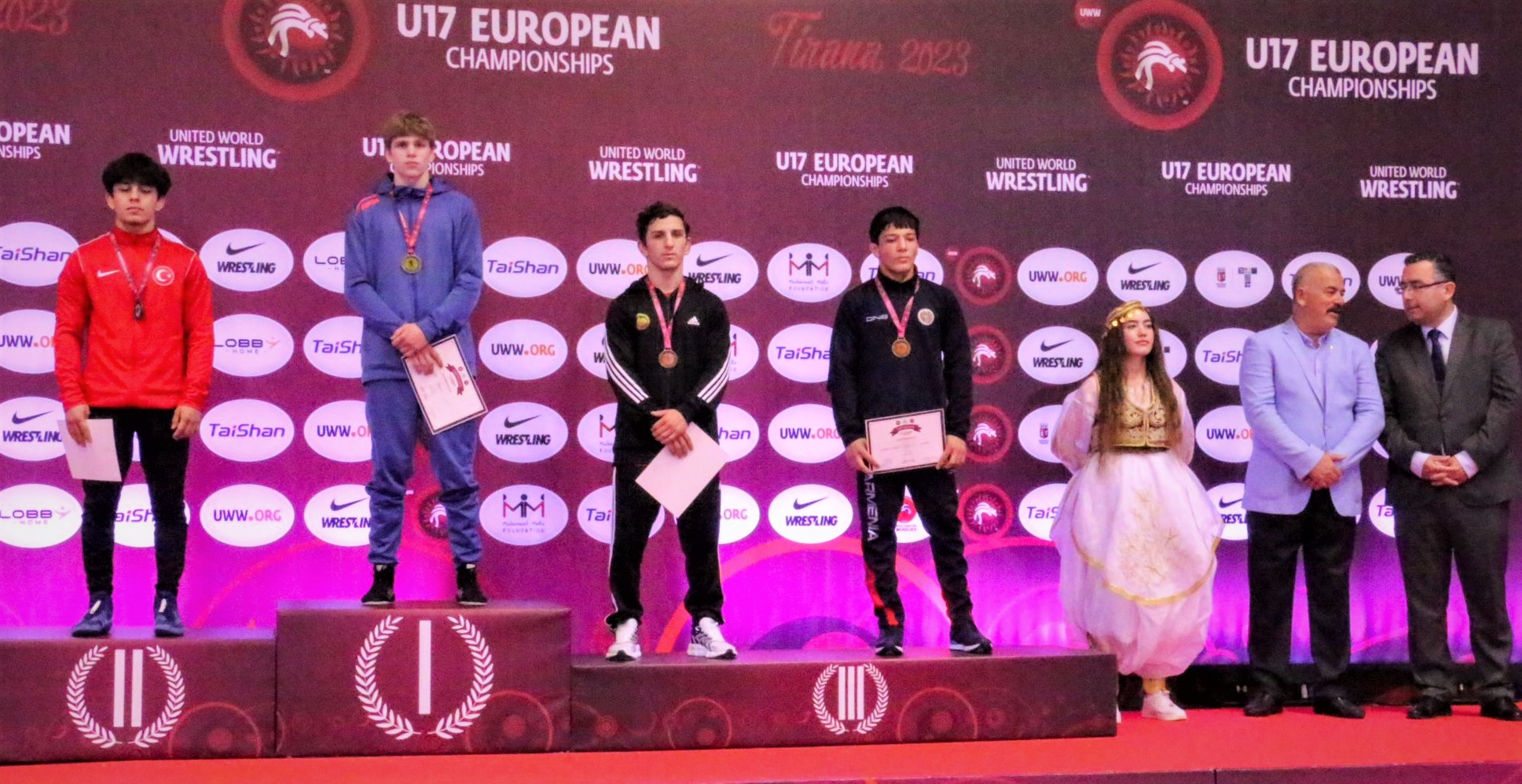 10 kategoride mücadele edilen Tiran'daki müsabakalarda milli takım, 45 Kg'da Slovak rakibini 8-0 yenen Milas Mehmet Güçlü Güreş Eğitim Merkezi'nin milli güreşçisi Mehmet Hanifi Sarp ile bronz, 110 Kg'da Estonyalı rakibini 10-0 yenen İstanbul Büyükşehir Belediyespor'un milli sporcusu Cemal Yusuf Bakır ile de bronz madalyanın sahibi oldu. 51 Kg'da bronz müsabakasına çıkan Torku Şeker Sporlu milli güreşçi Ömer Altaş ise Gürcistanlı sporcu Koba Karumidze'ye 8-0 mağlup oldu.