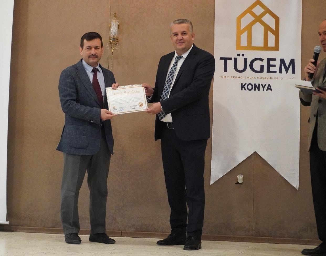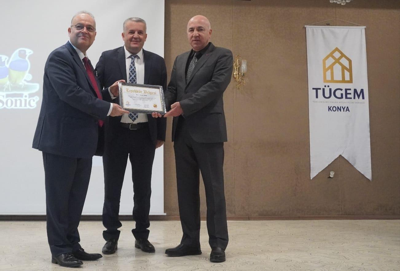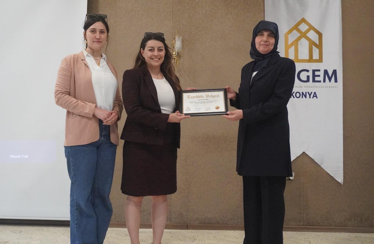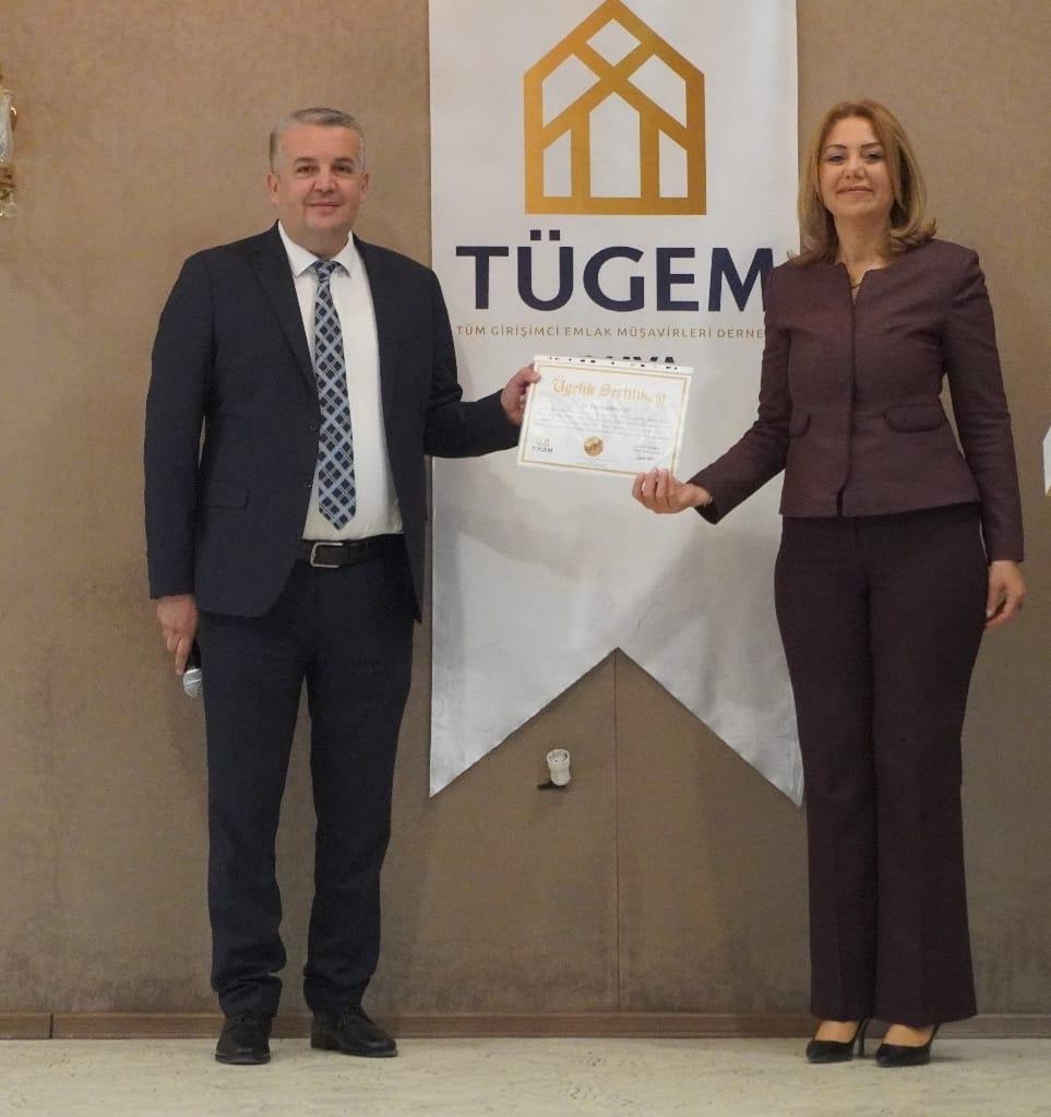 TÜGEM Eğitim Komitesi Başkanı Hasan CEPHE, Emlakçılar Odası Başkanı Sedat ALTINAY ve Ünsal Hukuk Av. Bulut ÜNSAL'ın adına İrem AKGÜNEŞ e teşekkür belgesi takdim edildi.