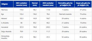 Buna göre, ülkede 2025 sonbahar yağışları uzun yıllar ortalamasına göre yüzde 18, geçen yılın aynı dönemine göre yüzde 6 azaldı.
