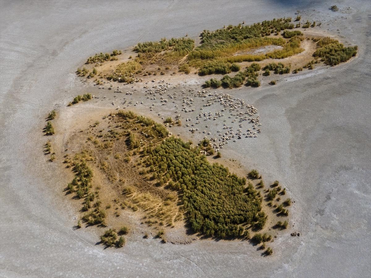 Türkiye'nin en önemli sulak alanlarından biri olan Konya'nın Ereğli ilçesindeki Akgöl'de suların çekilmesiyle ilginç manzaralar oluştu.