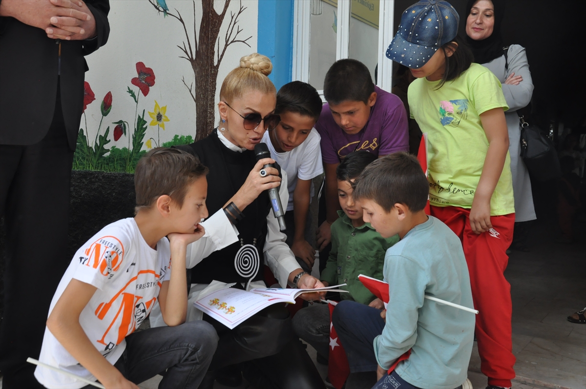Çocuk kütüphanesine babasının kitaplarını bağışlayan Özay, açılışta babasının kitaplarından şiirler okudu, çocuklara şiirler okuttu.