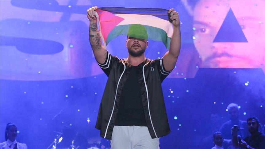 Şanlıurfa'daki Türkiye Kültür Yolu Festivali kapsamında düzenlenen konserde pop müzik sanatçısı Sinan Akçıl, Filistin bayrağı açarak Gazze'ye destek mesajı verdi.