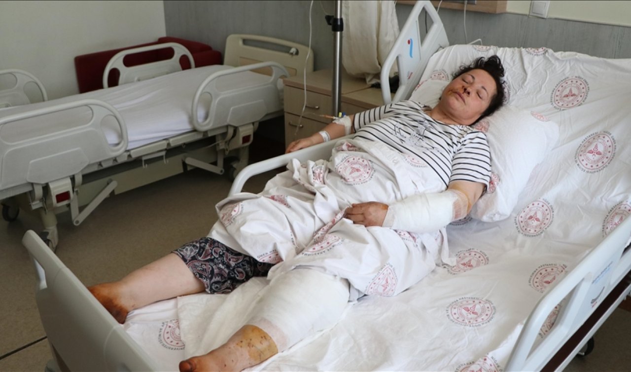 Çevredekilerin yardımıyla kurtulan kadın, sol kol ve bacağı ile dudağından yaralandı.
