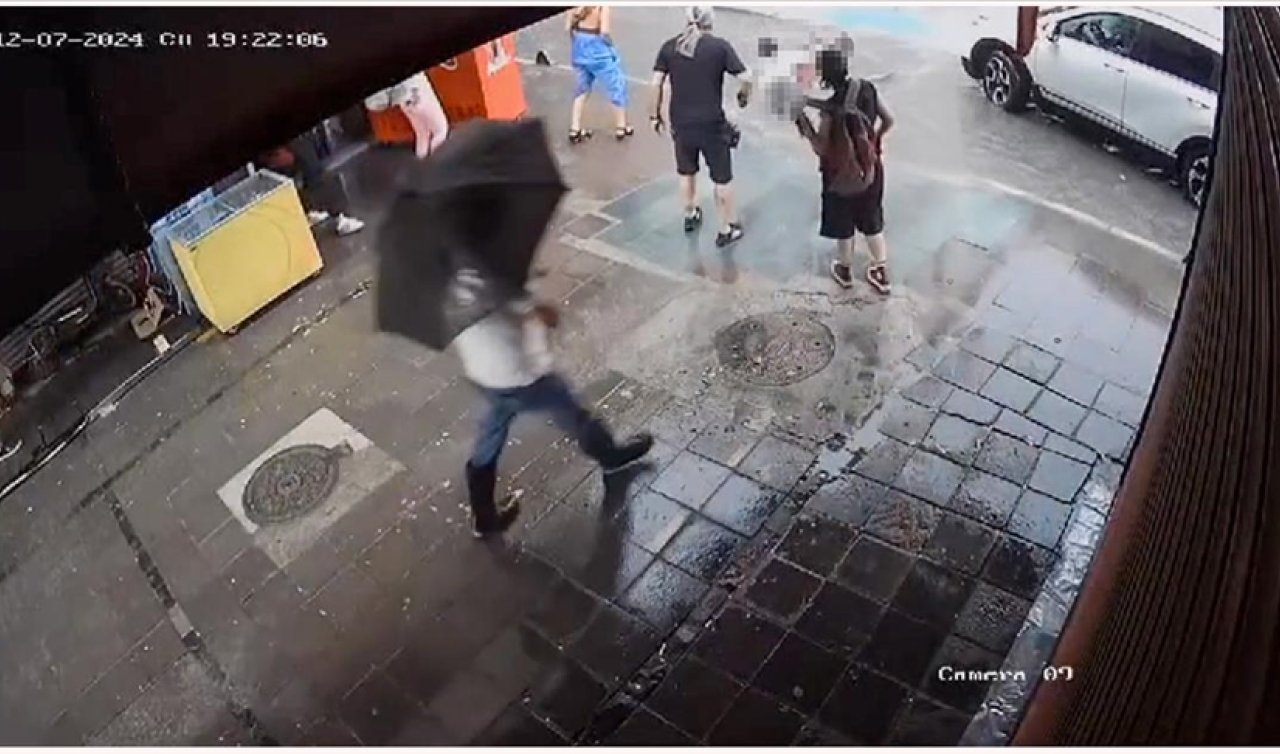 Bu sırada bölgede bulunan bir kişinin Öktemay'ı çekmek için ayakkabısına dokunduğu sırada elektrik çarpması sonucu geri kaçması ve yanındakilerin de panikle kaçışı dikkati çekiyor.
