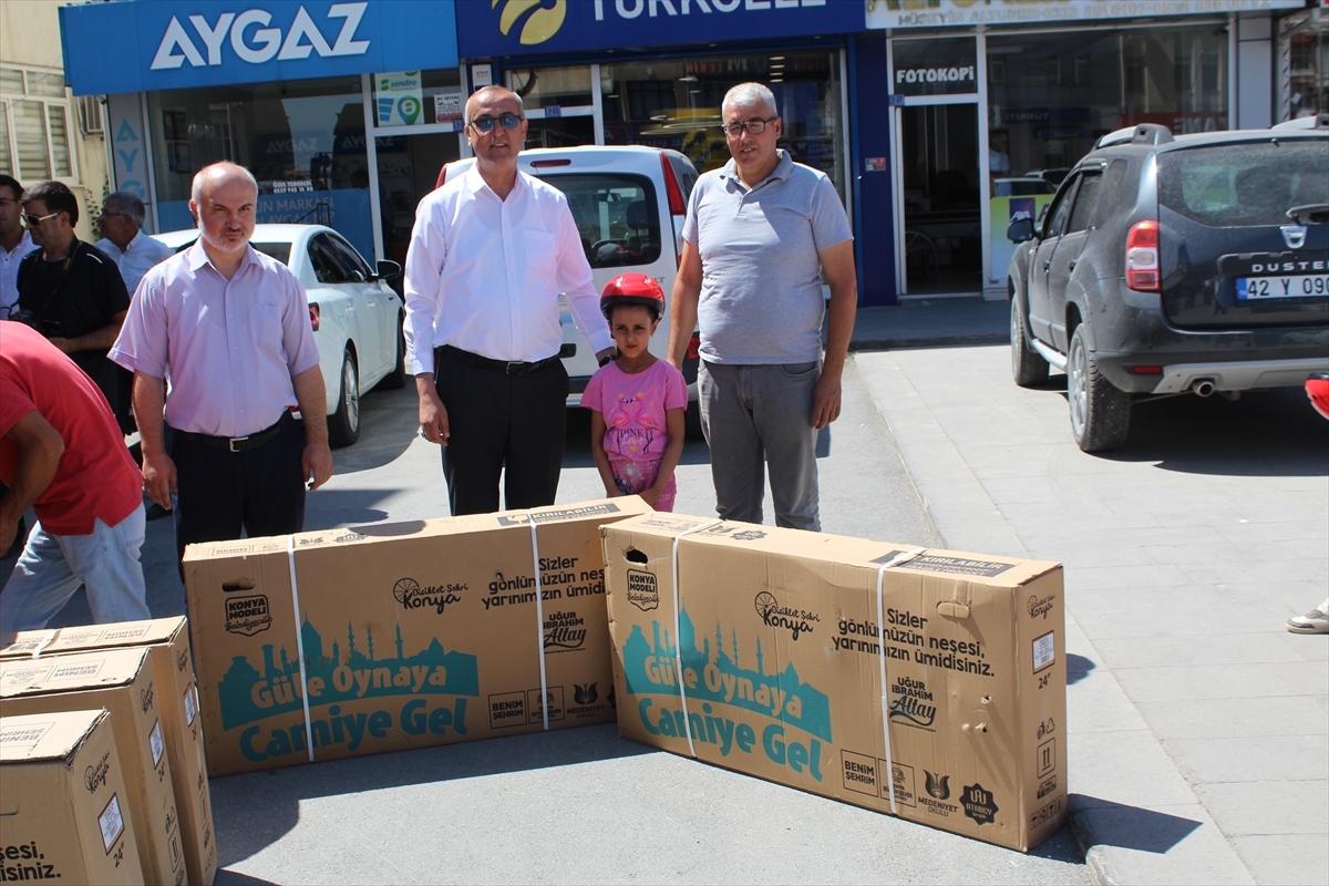 Konya Büyükşehir Belediyesi ve Yunak Belediyesi işbirliğiyle düzenlenen proje kapsamında ilçede, camiye gelen çocuklara bisikletleri verildi.