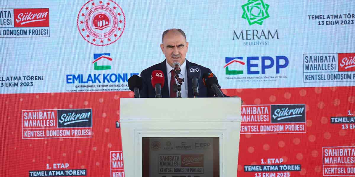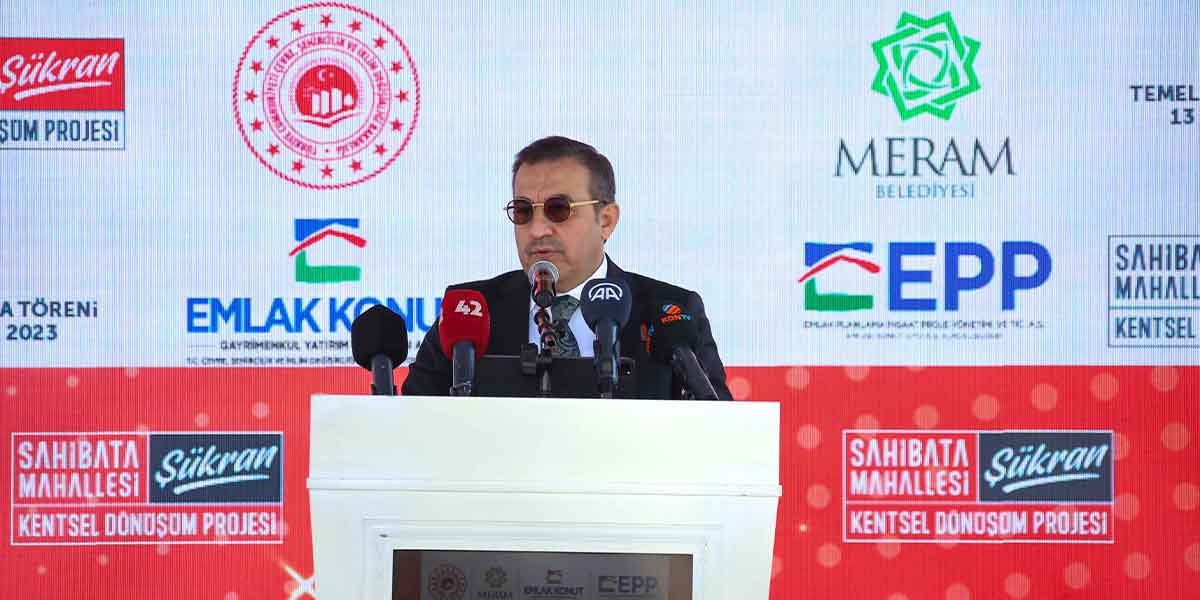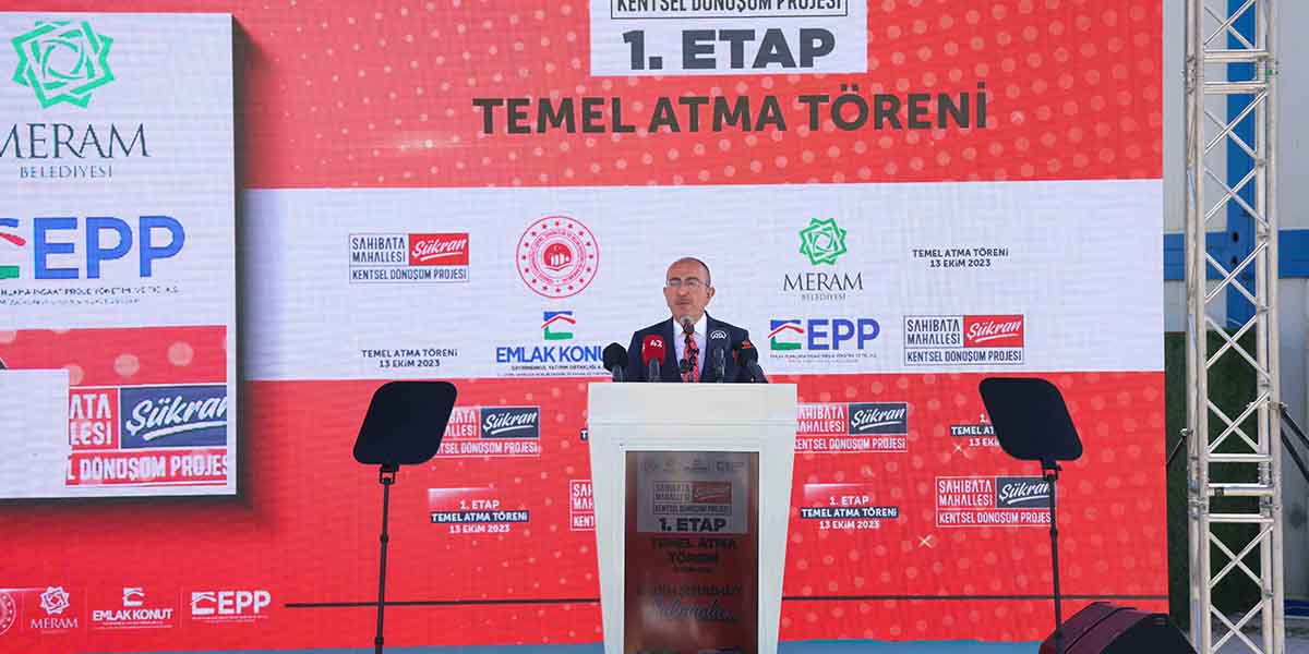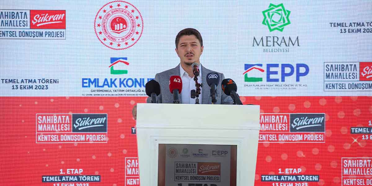 Törenin açılış konuşmasını yapan Meram Belediye Başkanı Mustafa Kavuş, kentsel dönüşüm projelerinin bir şehrin ‘yeniden başlama' mücadelesi, derlenip toparlanma ve yeniden ayağa kalkma savaşı ve bir şehrin, insana, hayata ve geleceğe tutunma çabası olduğunu ifade etti. Şükran Dönüşüm Projesi'nin hem 2 milyar lirayı aşan maliyeti hem de imar yoğunluğu ve yapı stoğu azaltılması sebebiyle Türkiye'nin de sayılı projelerinden biri olduğuna vurgu yapan Başkan Mustafa Kavuş, "Şehre ve Meram'a değer katacak Şükran Kentsel Dönüşüm Projesi, güzelliği, kalitesi ve her ayrıntısıyla Türkiye'ye örnek olacak nitelikte özellikler taşıyor. Burada yoğunluk veya kat artırımı şeklinde yapılan geleneksel dönüşüm çalışmalarının aksine imar yoğunluğu ve yapı stoğu önemli ölçüde azaltılarak planladık. Projede inşaat yoğunluğu yaklaşık üçte iki oranında düşürüldü. Bu önemli bir rakam. Rantı düşünmeden fedakarlık yaparak gerçekleştirdiğimiz bu projede doğal alanları çoğaltıyor ve yatay mimarinin en güzel örneklerini veriyoruz” diye konuştu.
