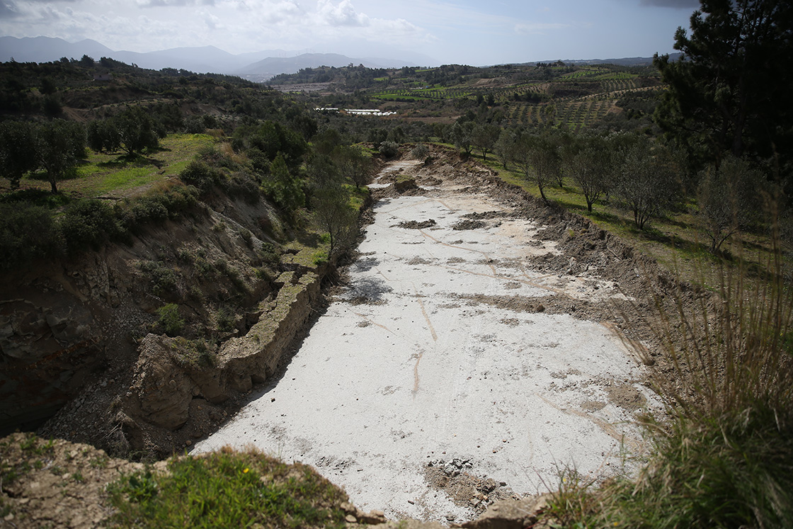 Kahramanmaraş merkezli 6 Şubat'ta meydana gelen depremlerde, Hatay'ın Defne ilçesindeki bir zeytin bahçesinde 15 metre genişlik ve 10 metre derinlikte yarık meydana geldi.