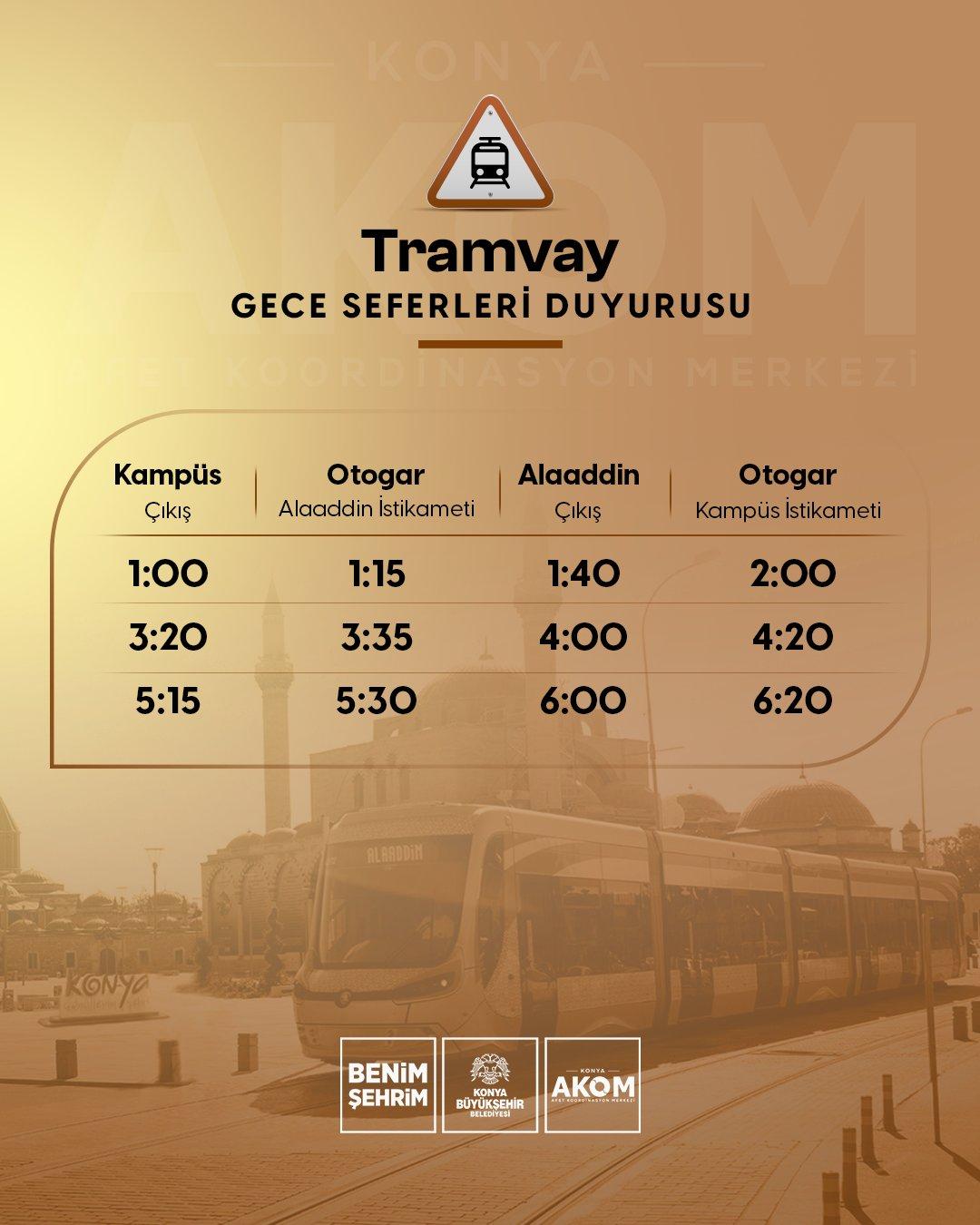 Konya Büyükşehir Belediyesi'nden yapılan açıklamada, vatandaşların güncel sefer saatleri ve güzergâh detaylarını Konya Büyükşehir Belediyesi Mobil Uygulaması ile atus.konya.bel.tr adresinden takip edebilecekleri hatırlatıldı.