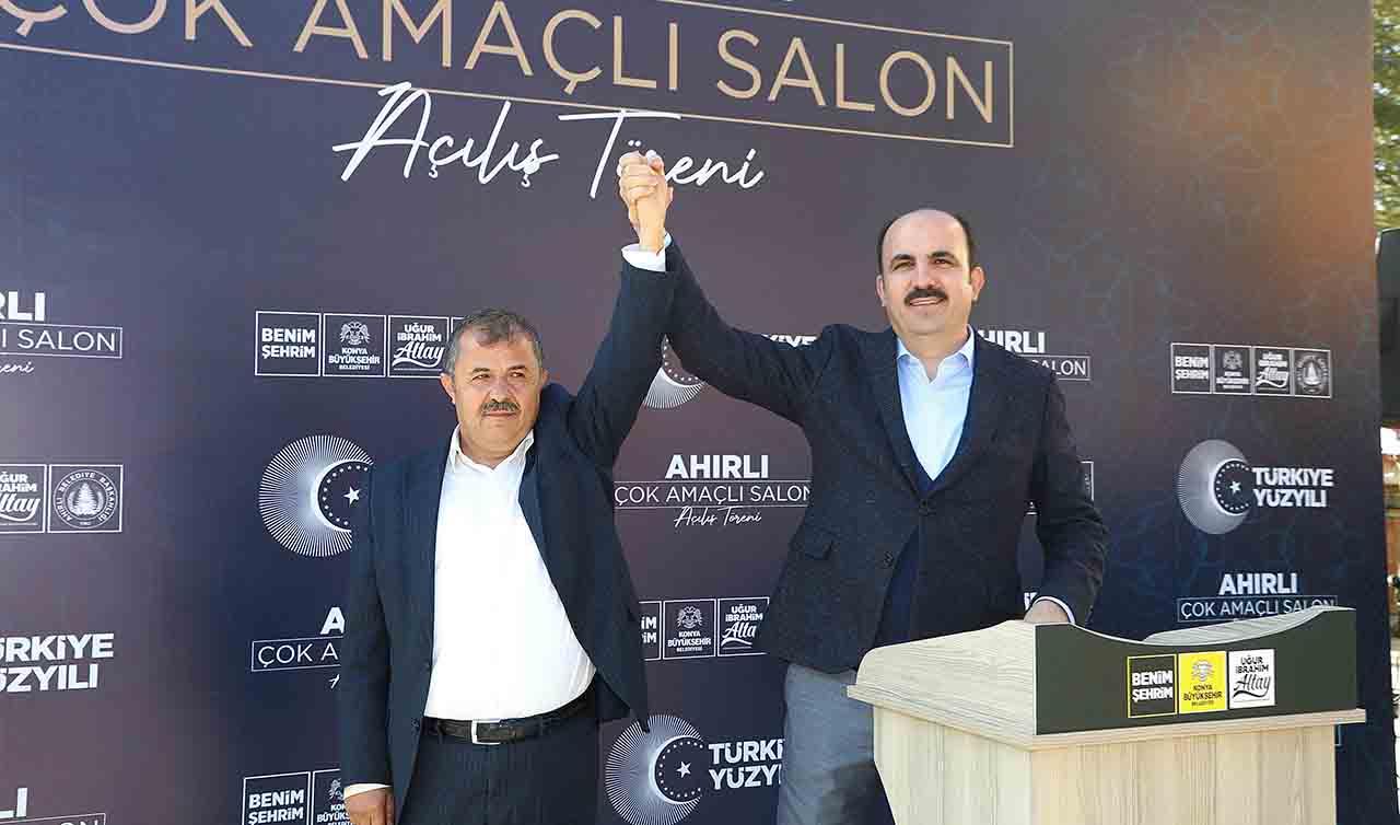 Konya Büyükşehir Belediye Başkanı Uğur İbrahim Altay, AK Parti Konya Milletvekili Mustafa Hakan Özer ile birlikte Yalıhüyük ve Ahırlı'da esnafla ve vatandaşlarla buluşarak Büyükşehir Belediyesi tarafından Ahırlı'ya kazandırılan çok amaçlı salonun açılışını yaptı. Yeni Büyükşehir Yasası'yla birlikte ilçelerin çehresinin değiştiğini belirten Başkan Altay, çok amaçlı salonun 2019'da verdikleri sözün bir eseri olduğunu ifade ederek, "Yaklaşık 14 milyon lira maliyetle yaptığımız tesisin hayırlı olmasını diliyorum. Biz bunun gibi bin tane salon yapsak hakkınızı ödeyemeyiz ama şuna emin olun, gece gündüz demeden çalışıyoruz. Bir eksiği daha tamamlamak için büyük bir çabanın içindeyiz” dedi.