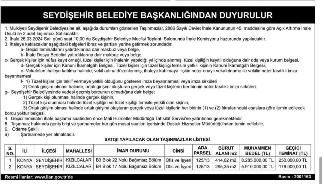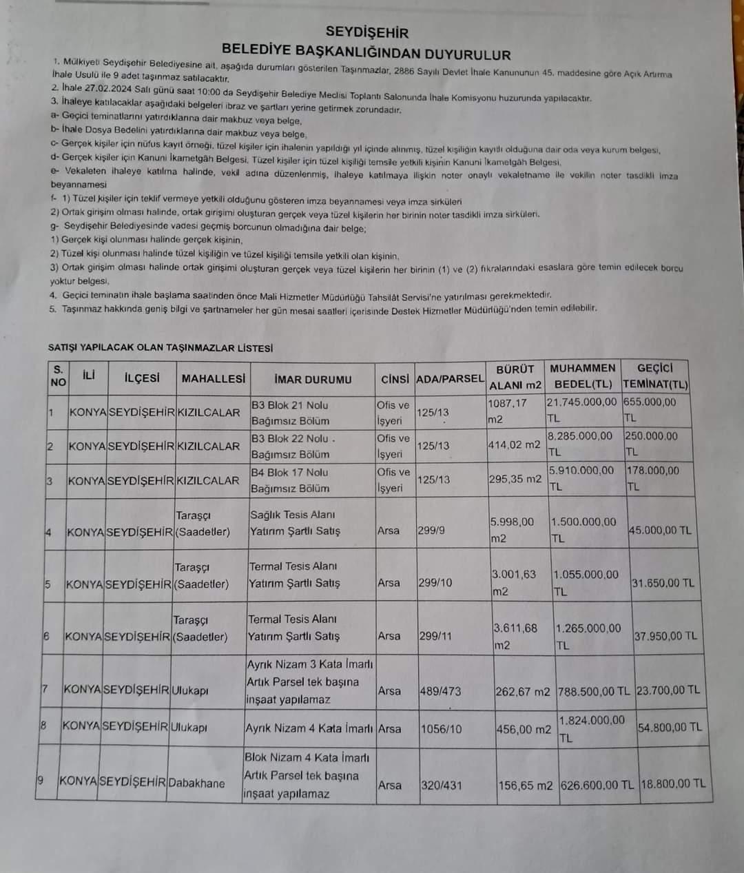 "2019 yılı Ekim ayında Seydişehir Belediyesi'ne ait 414 m2 taşınmaz işyerini, AK Parti Seydişehir Gençlik Kolları Başkanlığı görevini üstlenmeden önce aile şirketimiz adına açık artırma ihale usulü ile kiraladım. Sözleşme Süresi 2025 yılına kadar devam etmesine karşın, 27 Şubat 2024 tarihinde alel acele, elimize herhangi bir tebligat gelmeksizin satışa çıktığını resmi gazete üzerinden öğrendik.