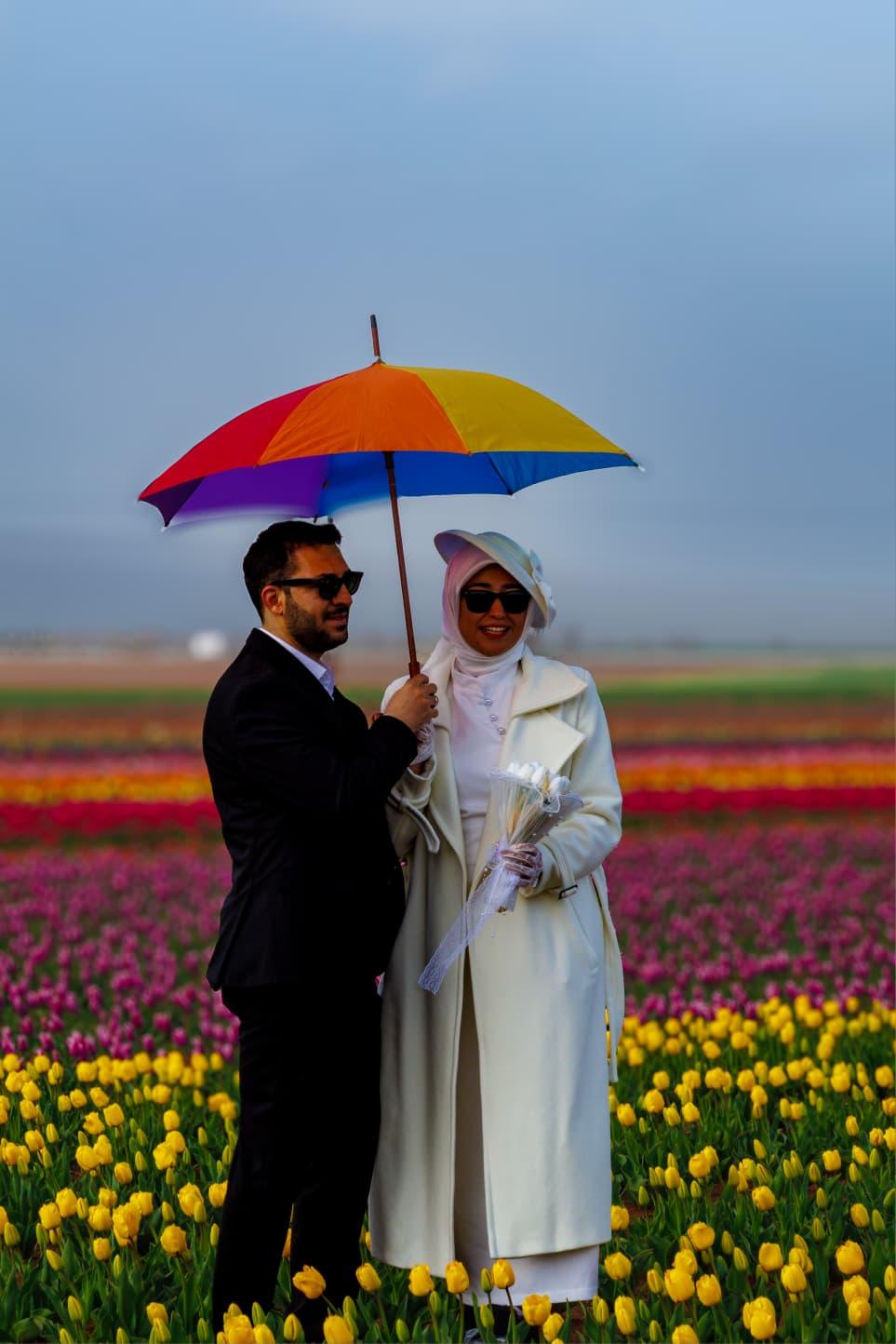 Özellikle evlilik hazırlığı yapan çiftlerin uğrak noktalarından biri haline gelen lale tarlası, doğal dekoru ve etkileyici atmosferiyle düğün öncesi çekimler için tercih ediliyor. Farklı renk ve türdeki lalelerin bir araya gelmesiyle oluşan renk cümbüşü, ziyaretçilere adeta kartpostallık görüntüler sunuyor.