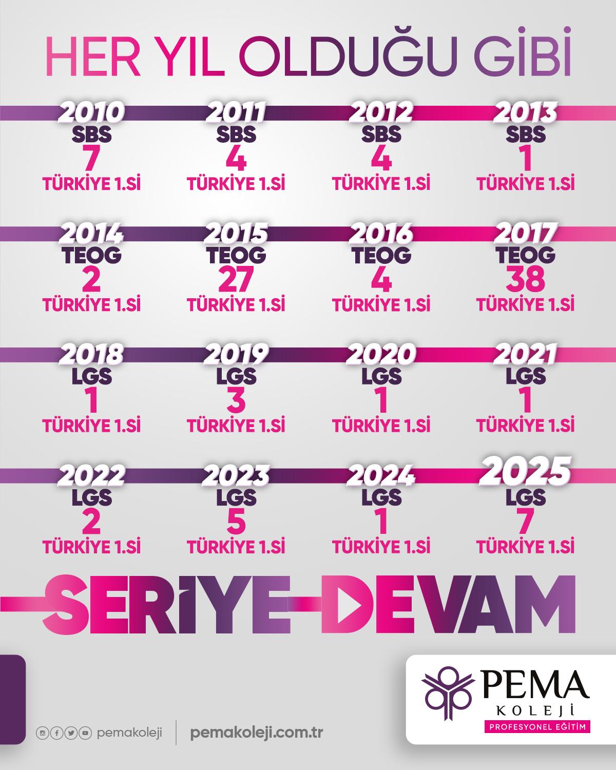 "Her yıl olduğu gibi bu yıl da PEMA ailesi olarak öğrencilerimizi büyük bir gururla kucaklıyoruz. 7 öğrencimizin Türkiye birincisi olması, disiplinli eğitim anlayışımızın ve öğrenci odaklı yaklaşımımızın bir meyvesidir. Başta öğrencilerimiz olmak üzere bu başarıya katkı sağlayan öğretmenlerimize, yöneticilerimize ve desteklerini hiç esirgemeyen velilerimize yürekten teşekkür ediyoruz.”