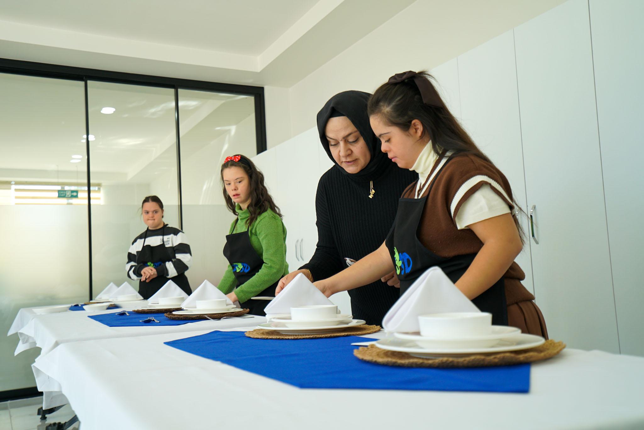 Merkezde down sendromlu bireyler için başlatılan komi (servis personeli) eğitim programı, özel bireylerin meslek edinmeleri ve iş hayatına katılmaları için umut dolu bir yolun kapısını aralıyor.