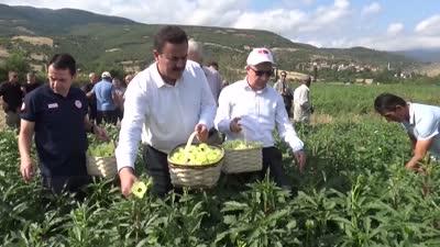 İlçeye bağlı Belevi köyünde düzenlenen etkinlikte, Vali Yılmaz Doruk, AK Parti Amasya Milletvekili Haluk İpek, Taşova Kaymakamı İmran Demirel ve diğer yetkililer bamya tarlasında ilk hasadı yaptı.