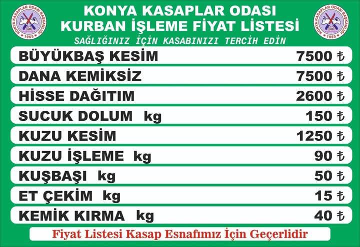 Kurban Bayramı yaklaşırken, Konya Kasaplar Odası 2025 yılına ait kurban kesim ve işleme hizmetlerine yönelik fiyat listesini duyurdu