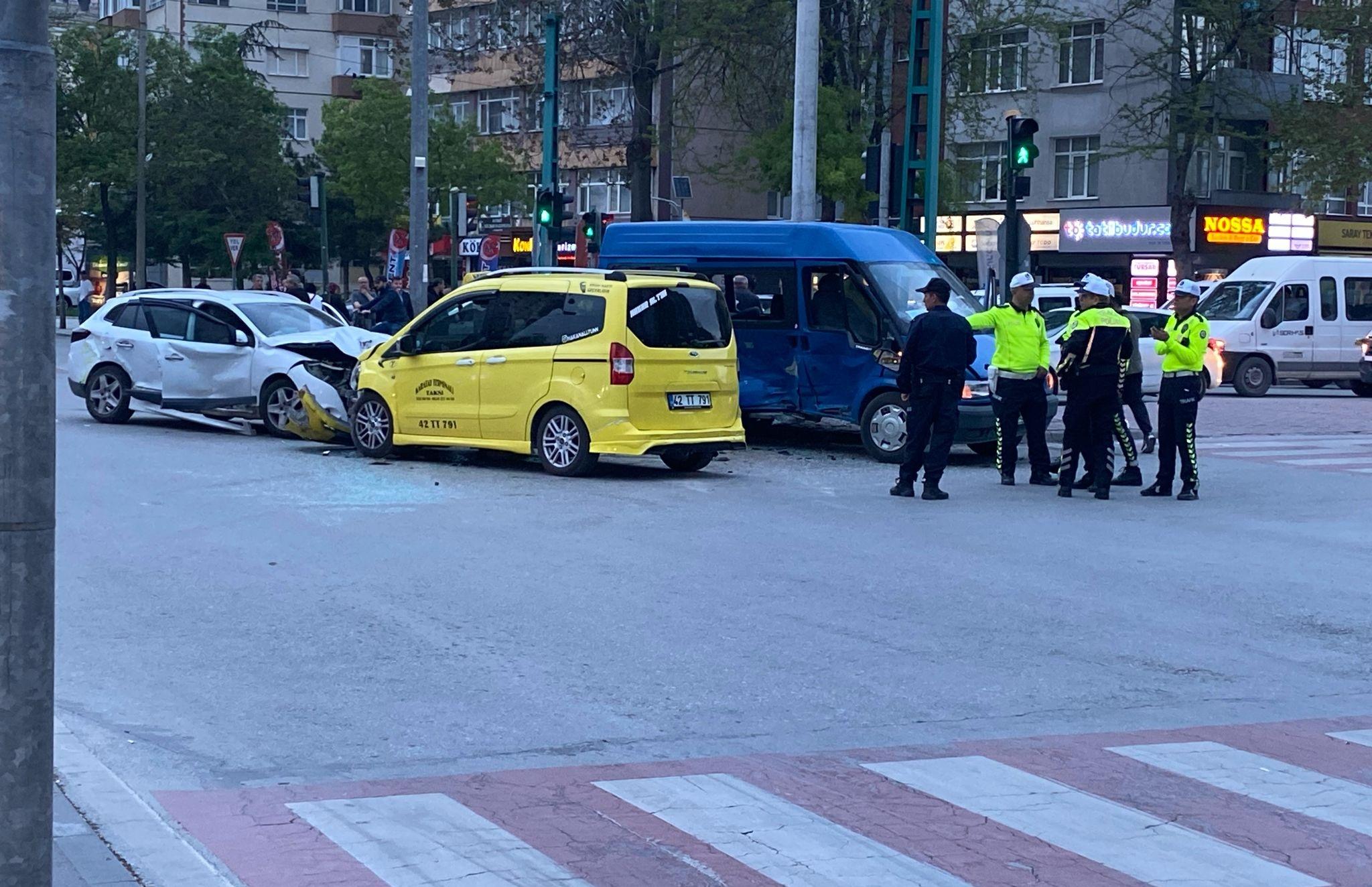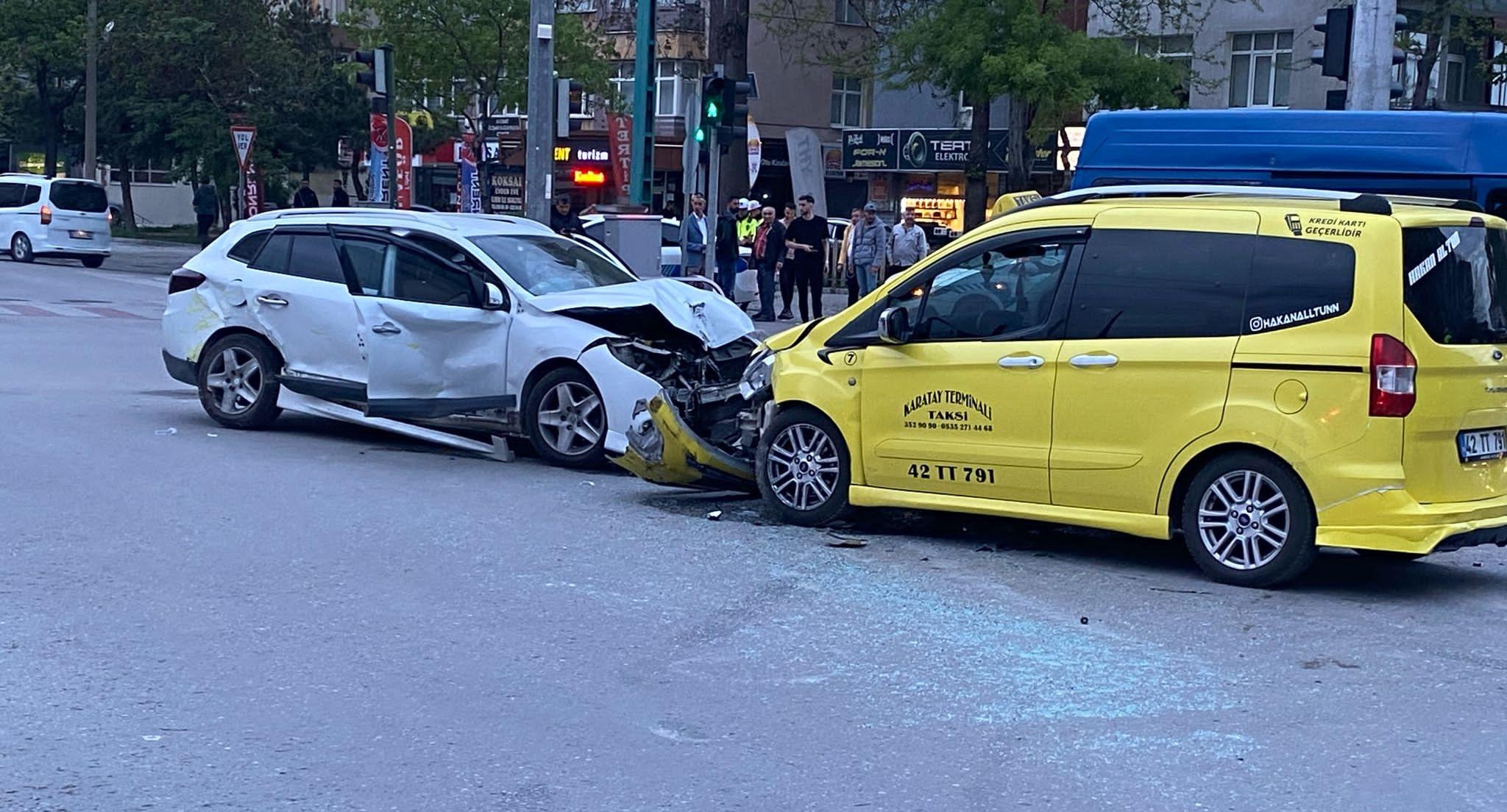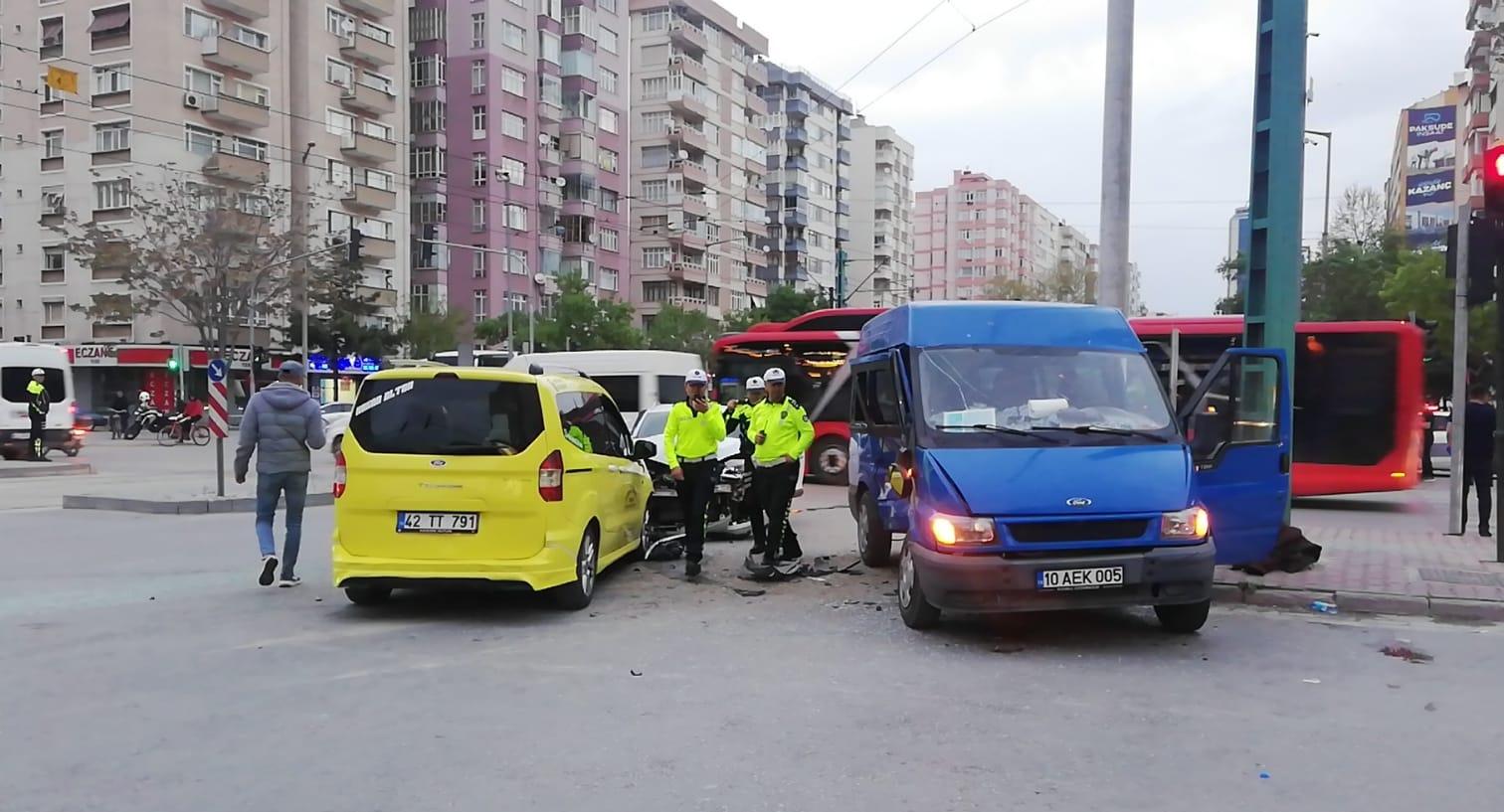 Konya'nın Selçuklu ilçesi Nalçacı Caddesi ile Rauf Denktaş Caddesi'nin kesişim noktası olan Nalçacı tramvay durağı kavşağında kaza yaşandı.