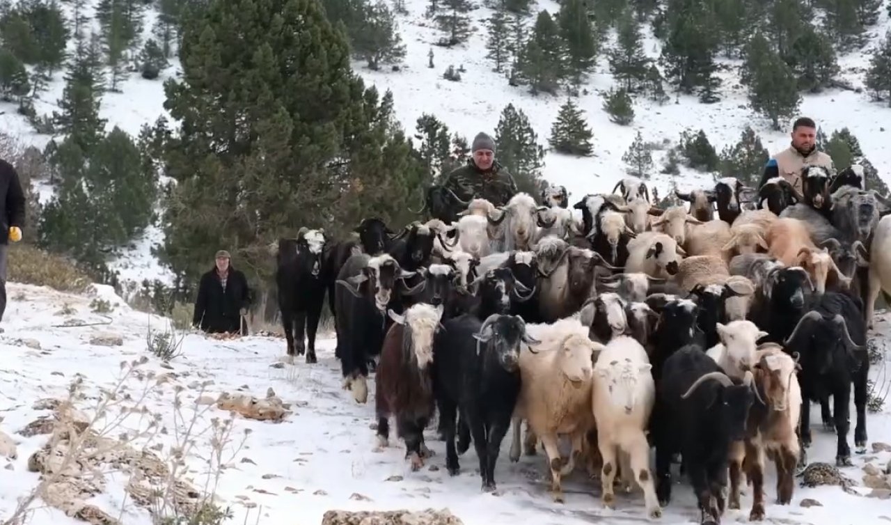 Konya’nın Derebucak ilçesinde 3 besici ve hayvanları kar yağışı nedeniyle yaylada mahsur kaldı.