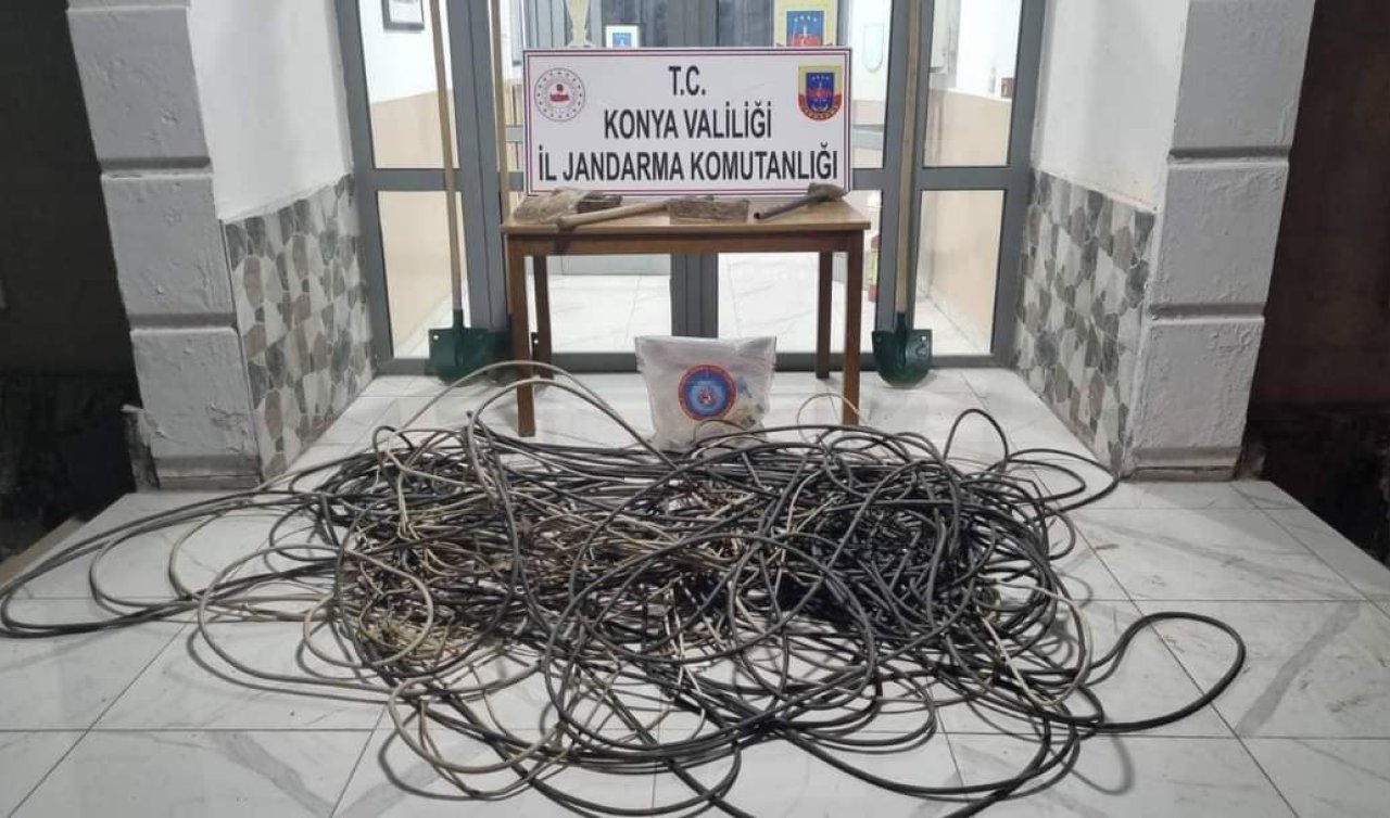 Olay yerinde yakalanan şüphelilerden 4 adet kürek, 1 adet balyoz, 3 adet çekiç, 1 adet sopa, 2 adet murç ve 400 metre kablo ele geçirildi.