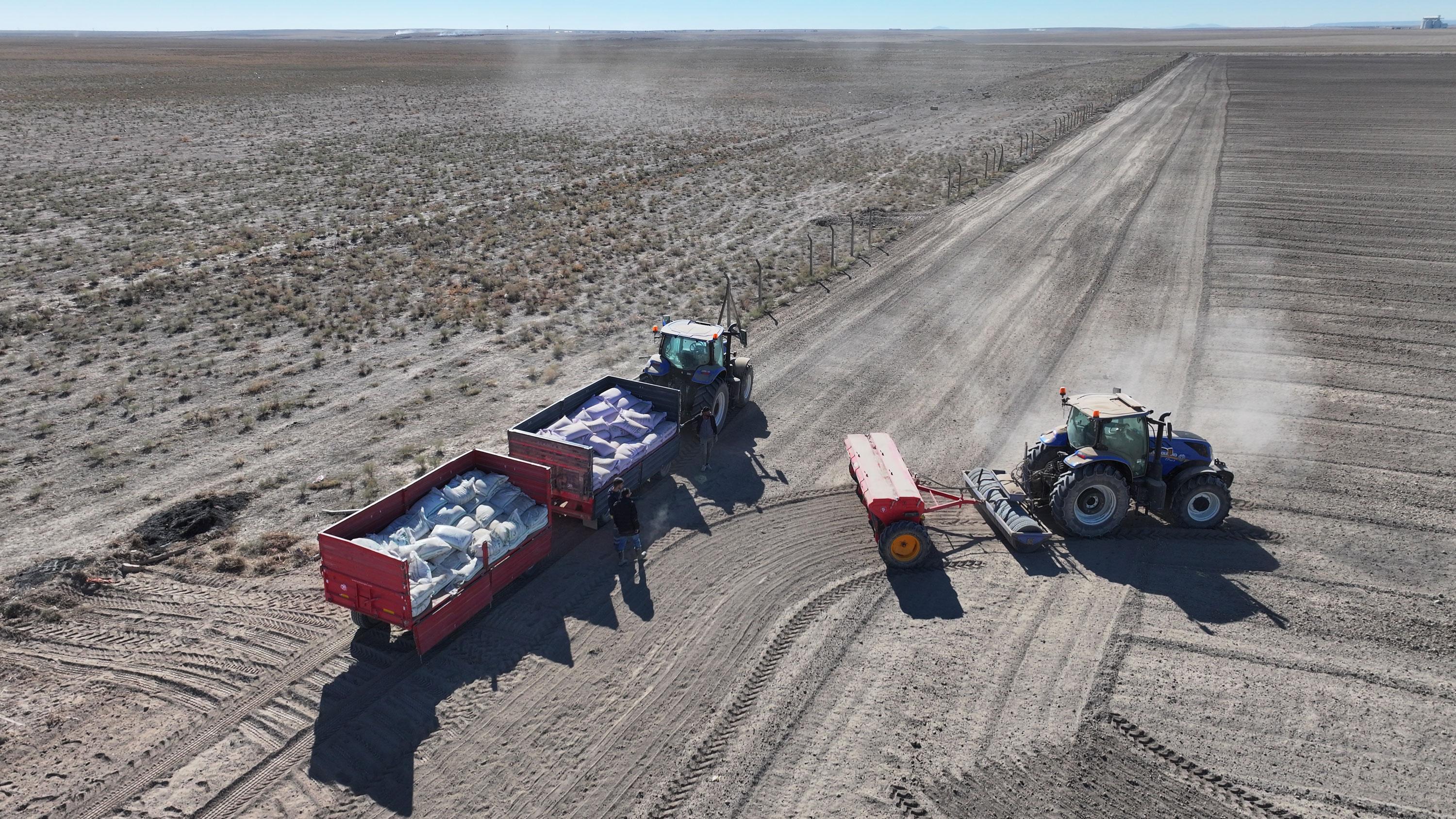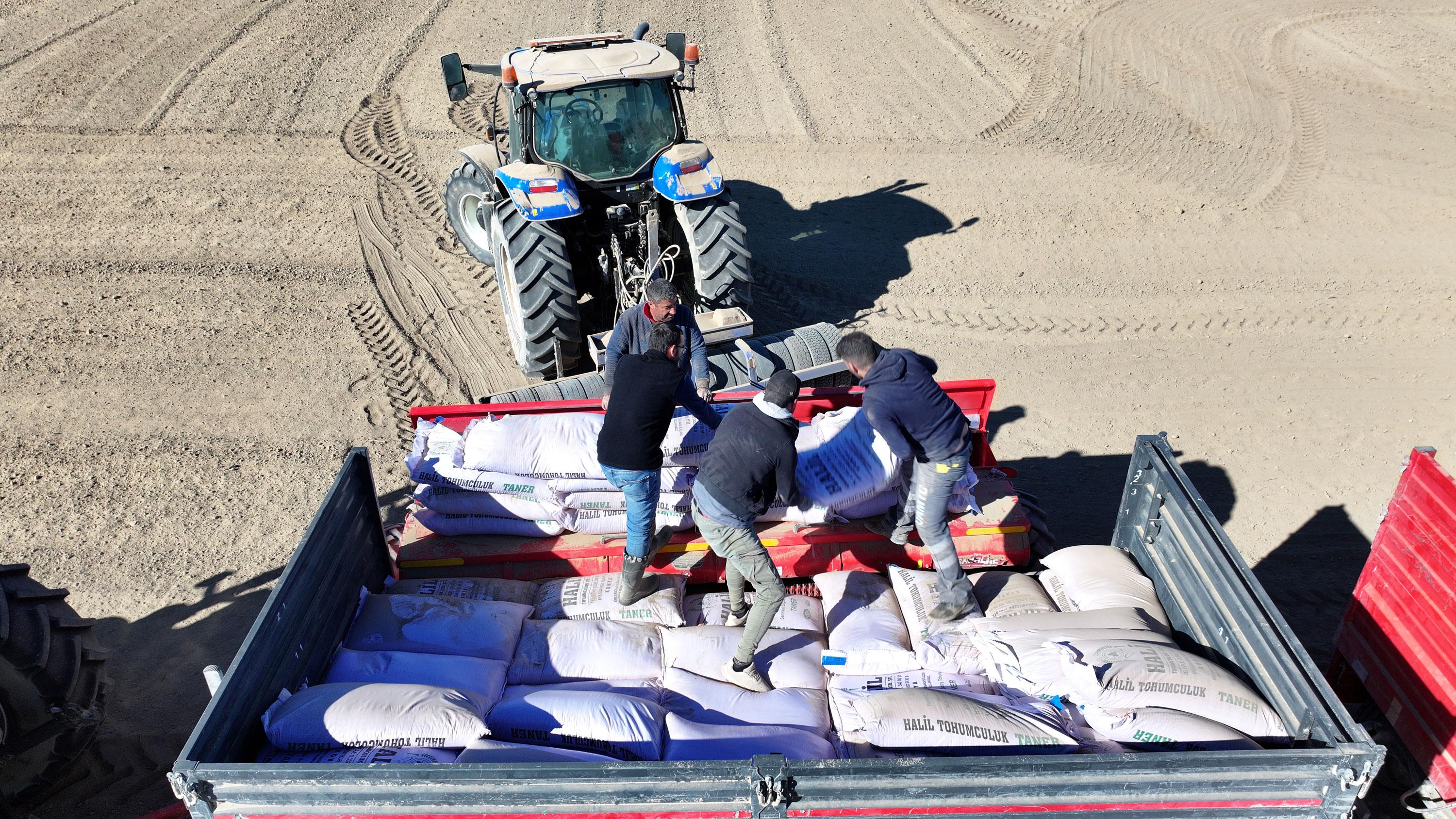 Konya'da iklim değişikliğinin ve kuraklığın etkisine dayanıklı yerli ve milli tohumlar kullandıklarını belirten Başkan Altay, "Konya Büyükşehir Belediyesi olarak Kulu Acıkuyu mahallemizdeki 800 dekarlık tarımsal üretim sahamıza Bahri Dağdaş Uluslararası Tarımsal Araştırma Enstitüsü Müdürlüğü'müzce geliştirilmiş ekmeklik buğday çeşidi Taner'in ekimini gerçekleştirdik. Yöre halkımıza milli çeşitlerimizin tanıtımını yapıyoruz. Toprak analizini yaptırdığımız arazinin tahlil sonuçlarına göre kullanılan gübreleme modeli ve tohum kaplama ile üreticilerimize farklı bakış açıları kazandırıyoruz. Ayrıca tüm tarımsal üretim aşamalarında bölgedeki çiftçilerimizden alet ve ekipmanları kiralamak suretiyle bir dayanışma modeli sergileme anlayışımızı da sürdürüyoruz. Tarımsal üretim alanlarımızda, ekimden hasada kadar olan her aşamada alanında uzman ziraat mühendislerimizin kontrolünde elde edilen ürünleri önceki yıllarda olduğu gibi inşallah bu yıl da sosyal yardımlarda kullanmayı planlıyoruz. Hayırlı olsun” değerlendirmesinde bulundu.