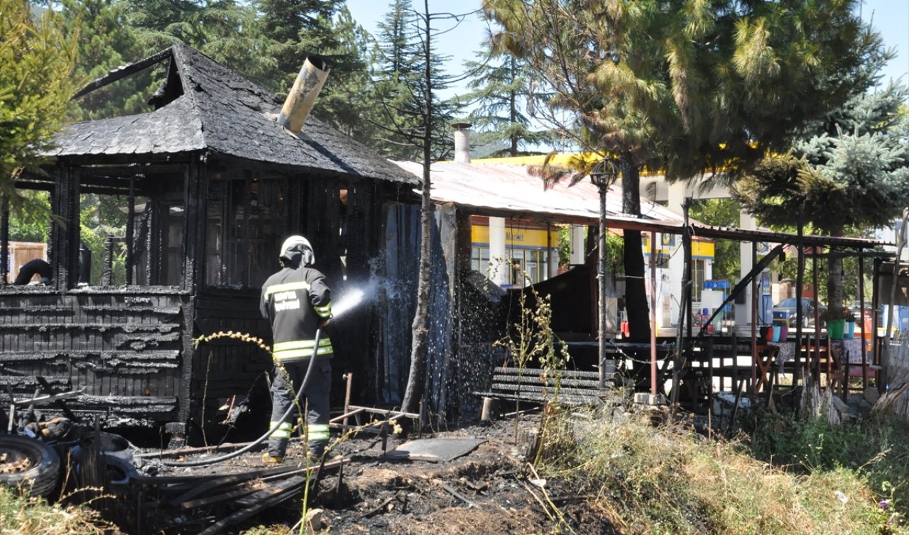 Konya'nın Akşehir ilçesindeki akaryakıt istasyonunun bahçesinde bulunan kokoreççi dükkanında çıkan yangın söndürüldü.