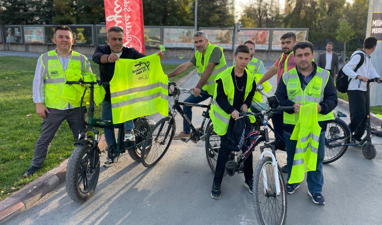 Konya Büyükşehir Belediyesi tarafından Avrupa Hareketlilik Haftası kapsamında ilk gün sabah erken saatlerde bisiklet yollarında reflektörlü yelek dağıtımı gerçekleştirildi. İşe bisikletle giden vatandaşlar kendilerine yelek dağıtılmasından duydukları memnuniyeti dile getirerek uygulamadan dolayı Büyükşehir Belediyesi'ne teşekkür etti.