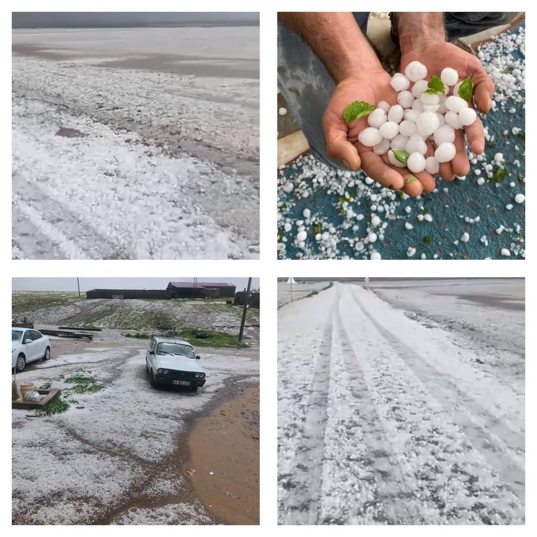 Konya'nın Yunak, Altınekin ve Cihanbeyli ilçelerinde ceviz büyüklüğünde dolu yağdı. Her yer beyaza büründü. Yollarda araçlar hareket etmekte zorlandı. Tarlalarda ekili tarım ürünlerine büyük zarar verdi.