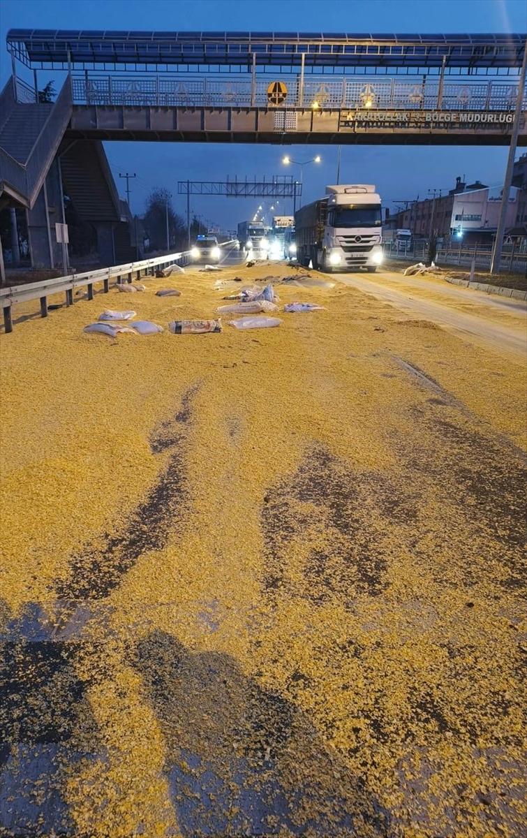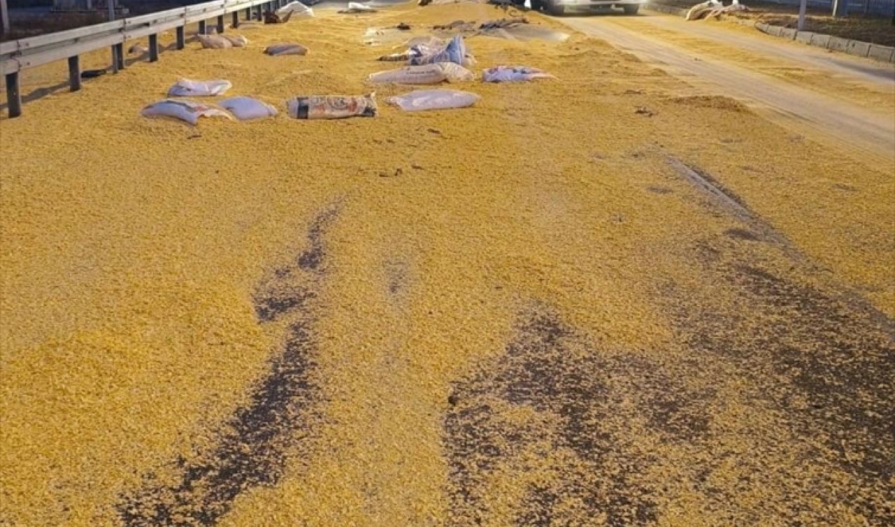 Konya’da feci kaza: Mısır yüklü tır yaya üst geçidine çarptı
