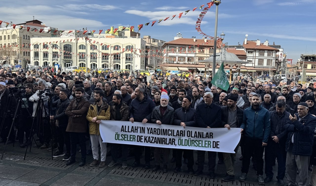 Mevlana Meydanı'ndaki Sultan Selim Camii önünde toplanan kalabalık, Filistin'e destek sloganı attı.