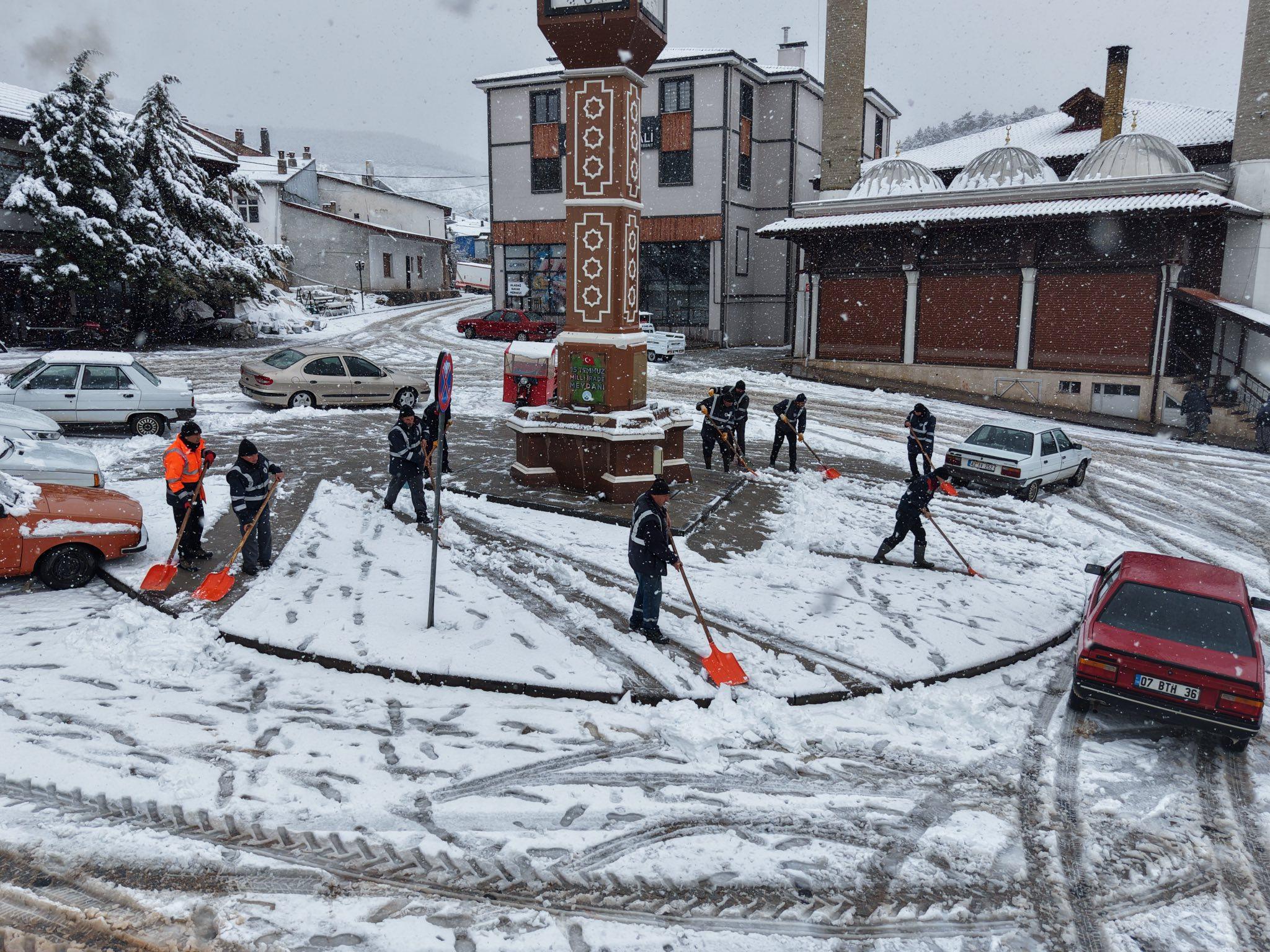 Derbent Belediyesi ekiplerince gece saatlerinden itibaren ilçe merkezi ve mahallelerinde yol temizleme çalışması yapıldı.