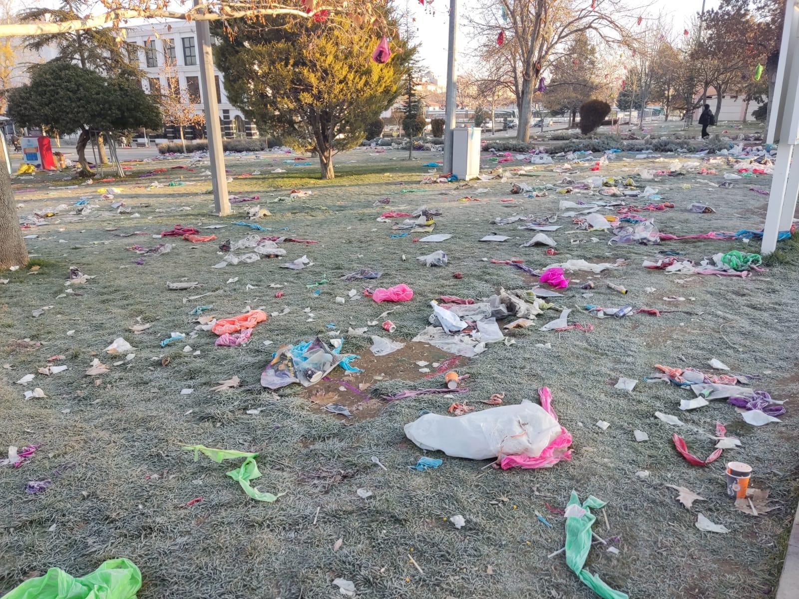 Ancak gece boyunca gökyüzünü süsleyen fenerlerin sabah farklı bir yüzü ortaya çıktı. Rüzgarın etkisiyle ağaçlara takılan ve çevreye dağılan fener kalıntıları, çevre kirliliğine neden oldu. Park görevlileri, sabahın ilk ışıklarıyla birlikte ağaçlardan fener toplamak ve çevreyi temizlemek için yoğun bir çaba harcadı.