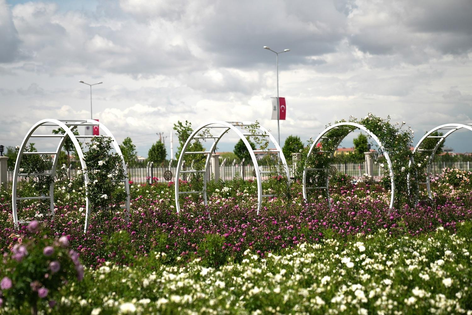 Karaaslan Üzümcü Mahallesi'nde 14 bin metrekarelik alanda 50 bin adet ve 190 farklı türde gülün ekildiği Karatay Mevlana Gül Bahçesi, yeni sezon için kapılarını vatandaşa açtı.
