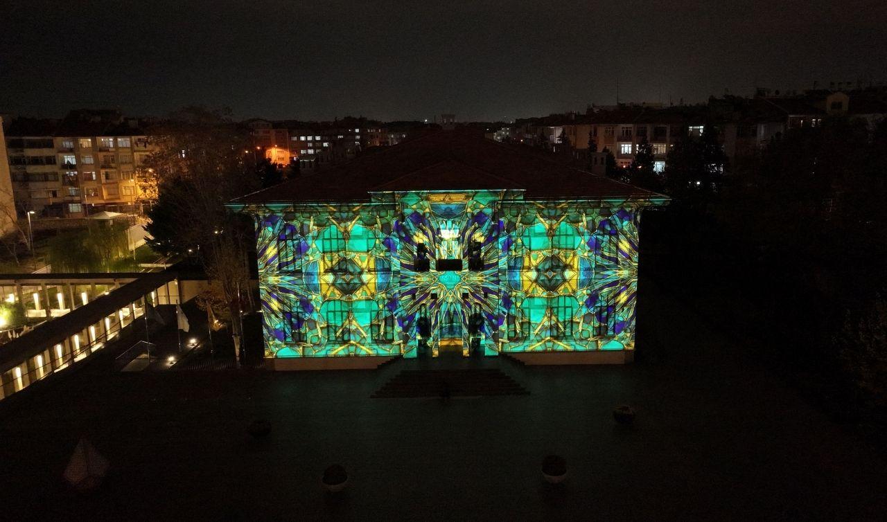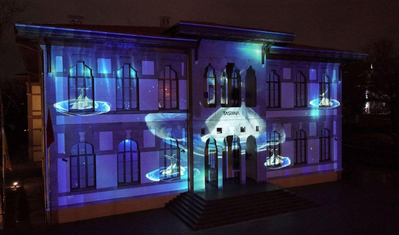 Konya Büyükşehir Belediyesi tarafından Taş Bina'da video mapping gösterisi gerçekleştiriliyor.